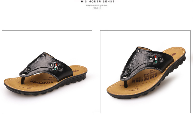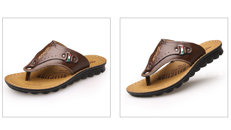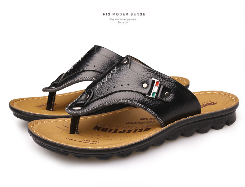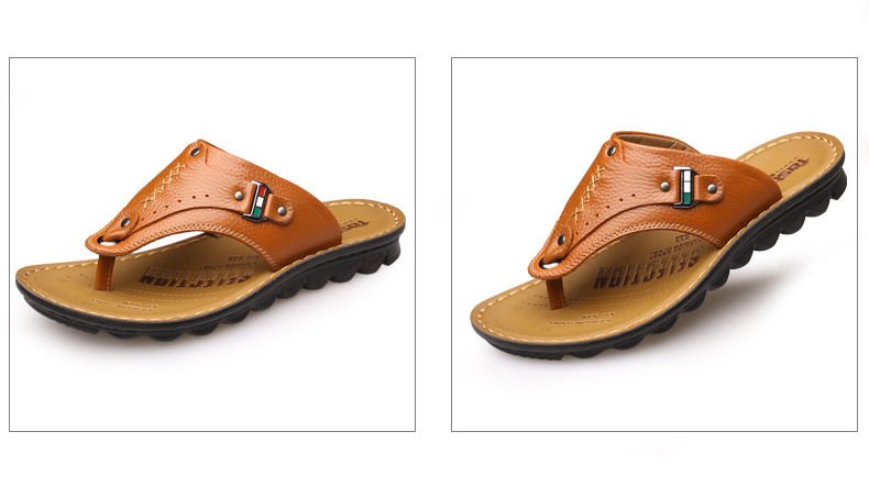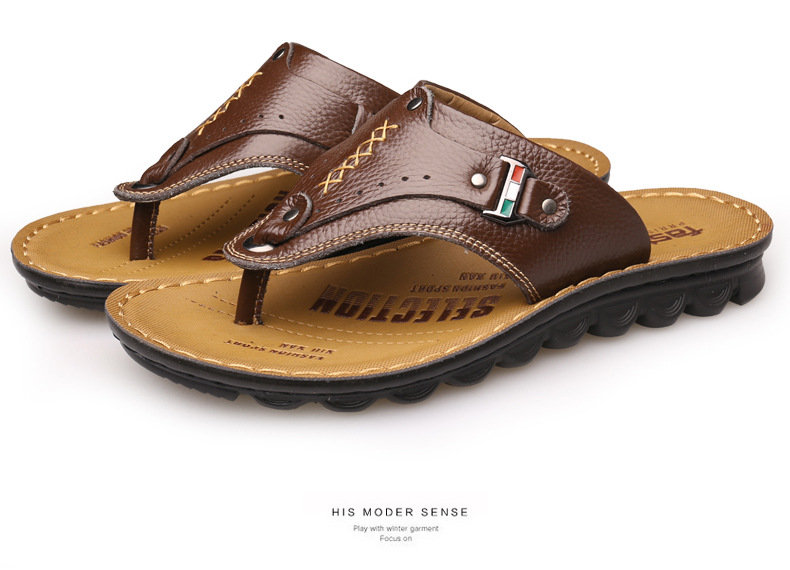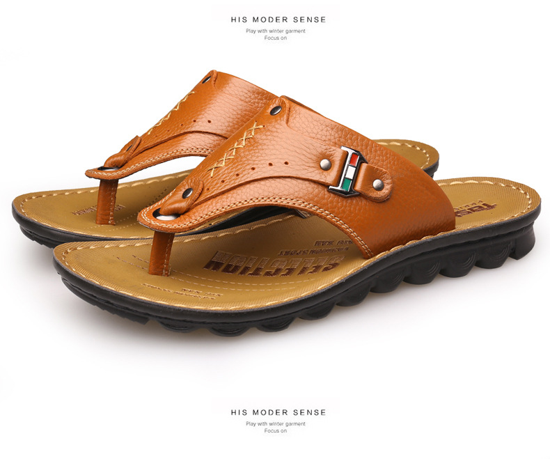 2020 summer new men's casual leather slippers clip toe beach shoes leather sandals men's soft bottom