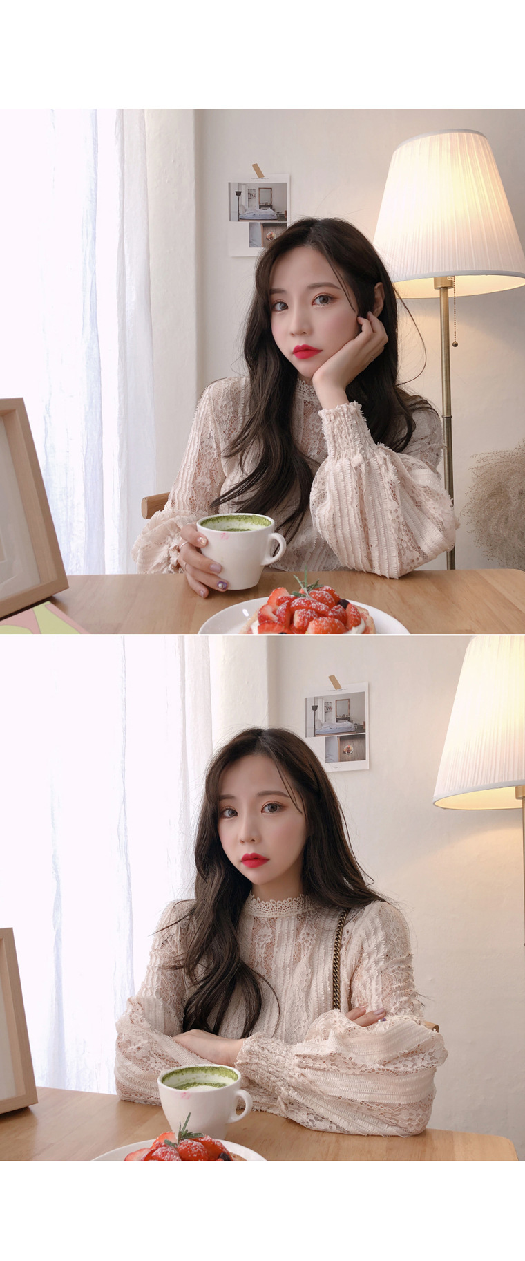 2021 Spring Lace Pullover Top Lantern Sleeve Long Sleeve Base Shirt Two-Piece Set