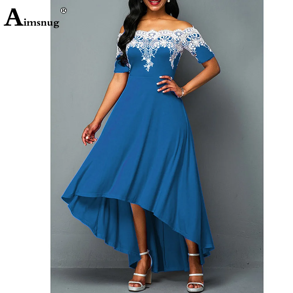 2023 europeo americano taglia 5xl donna elegante lungo Maxi vestito Slash Neck Party abiti da sera signore Vintage Splice Lace Dress