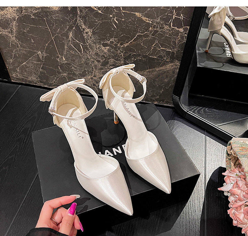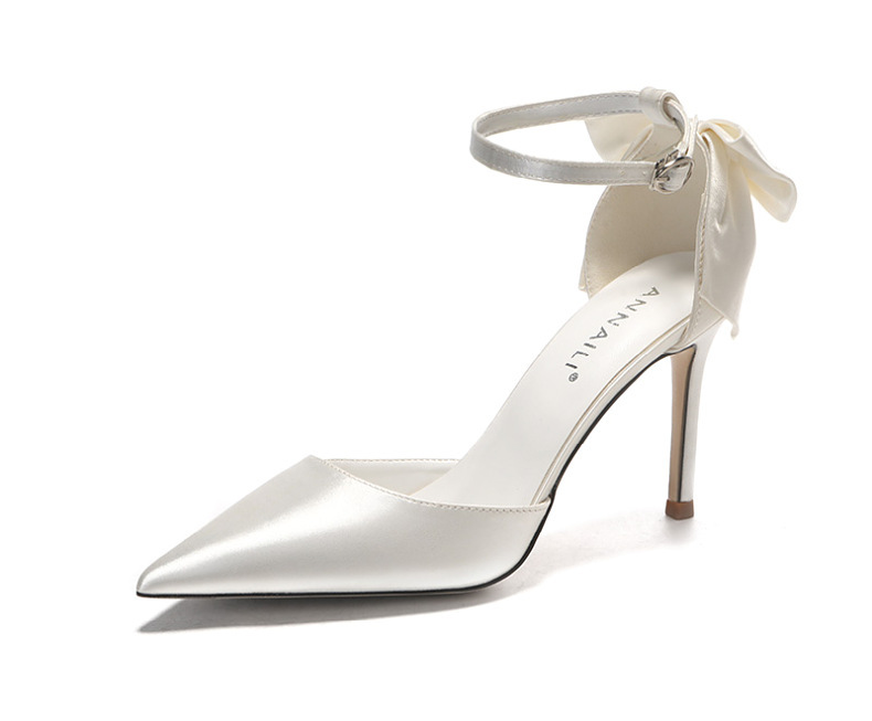 2023 new one-strap satin white wedding shoes sweet bow bridal shoes plus size high heels 42 43