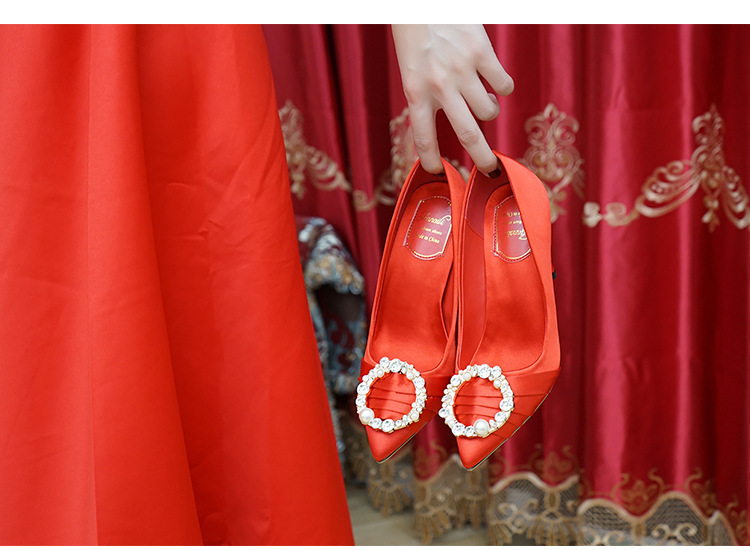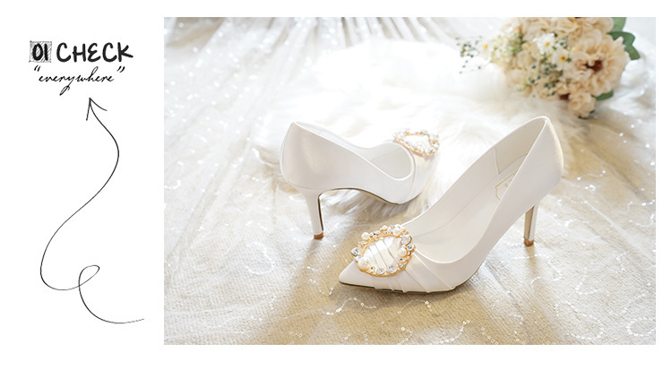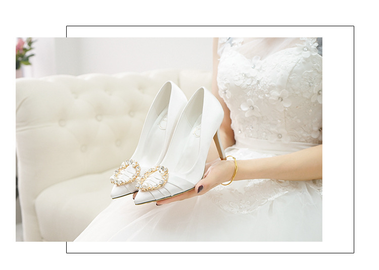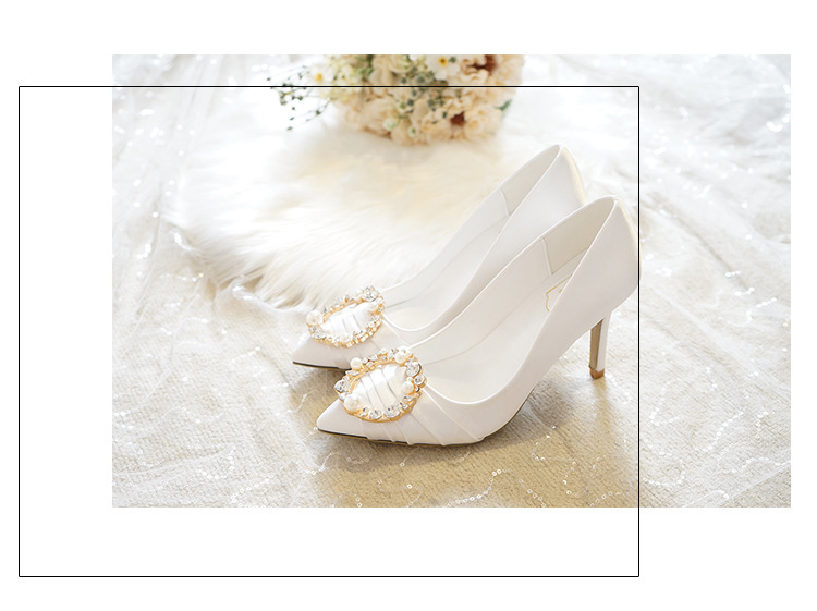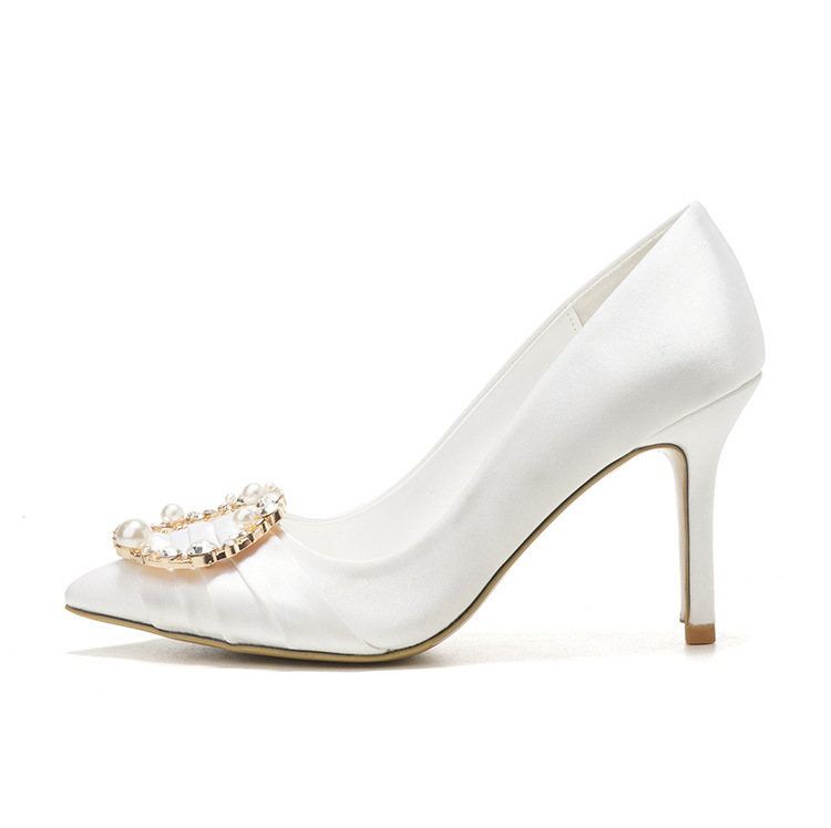 2023 New White High Heels Women's Pearl Rhinestone Large Size Wedding Shoes Dress Bridesmaid Shoes Bride Satin Wedding Shoes