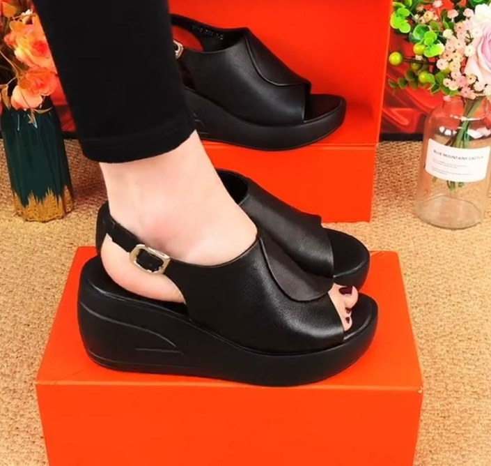 2024 summer thick-soled chunky-heeled sandals for women to wear as outdoor heightening fashionable open-toed fish-mouth shoes genuine leather buckle high heels