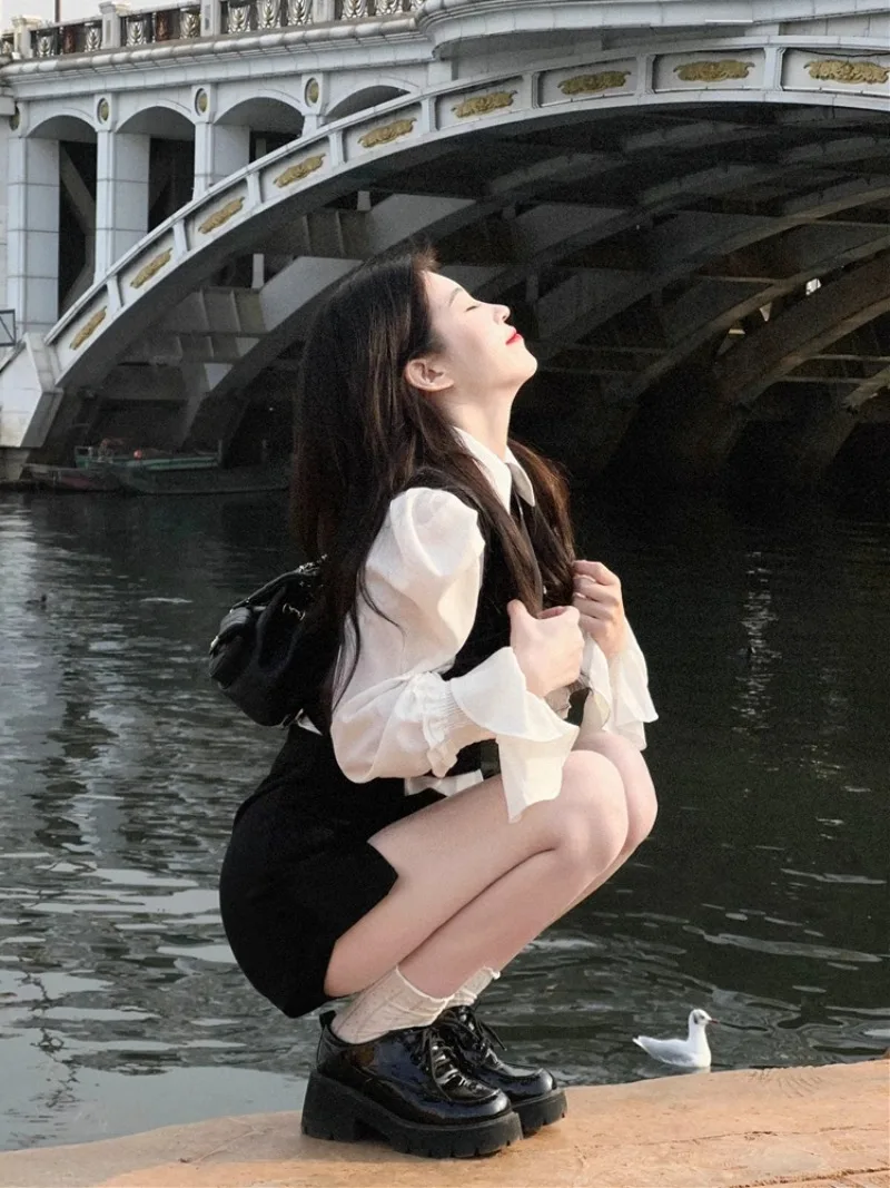 American Academy Shirt Vest Skirt Three Piece Set Women Lapel Spicy Girl Splice Slim Korean Fashion Slim Spring Chic Lady Suit