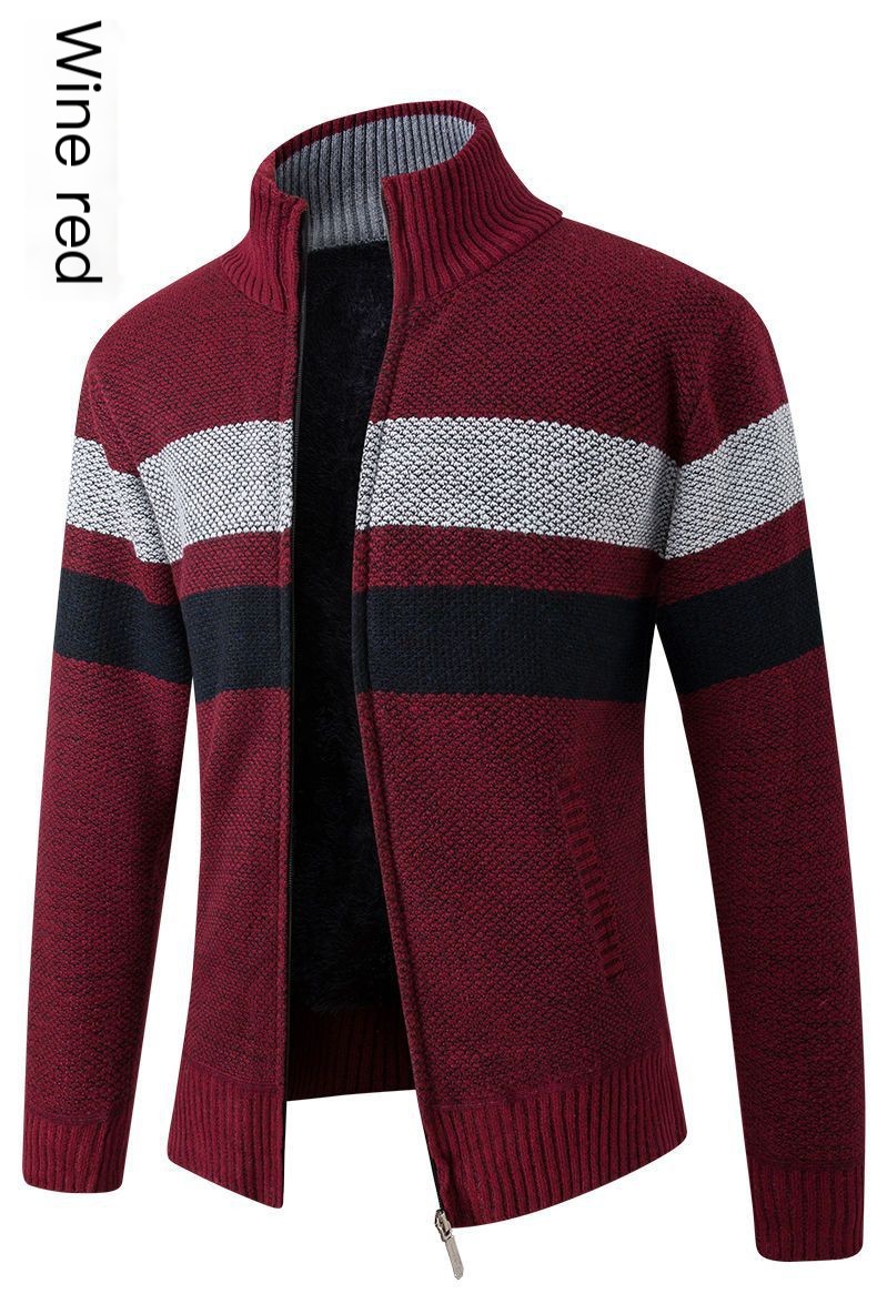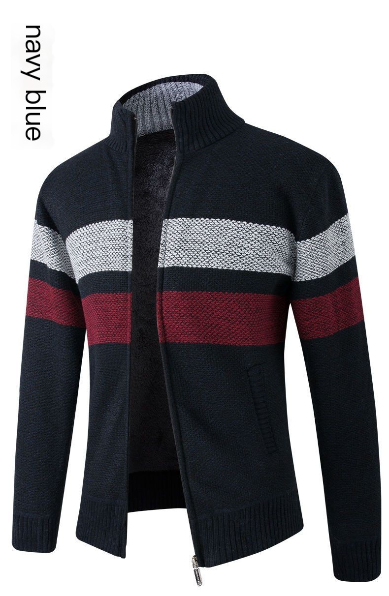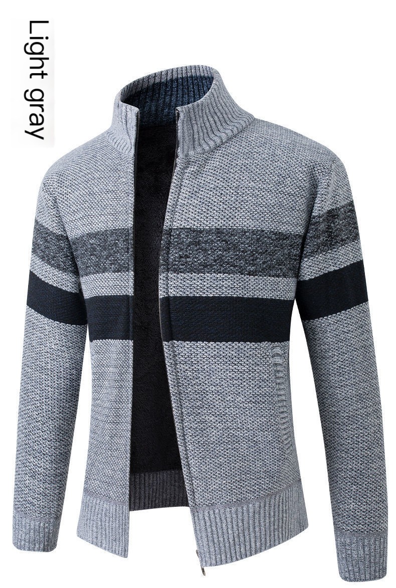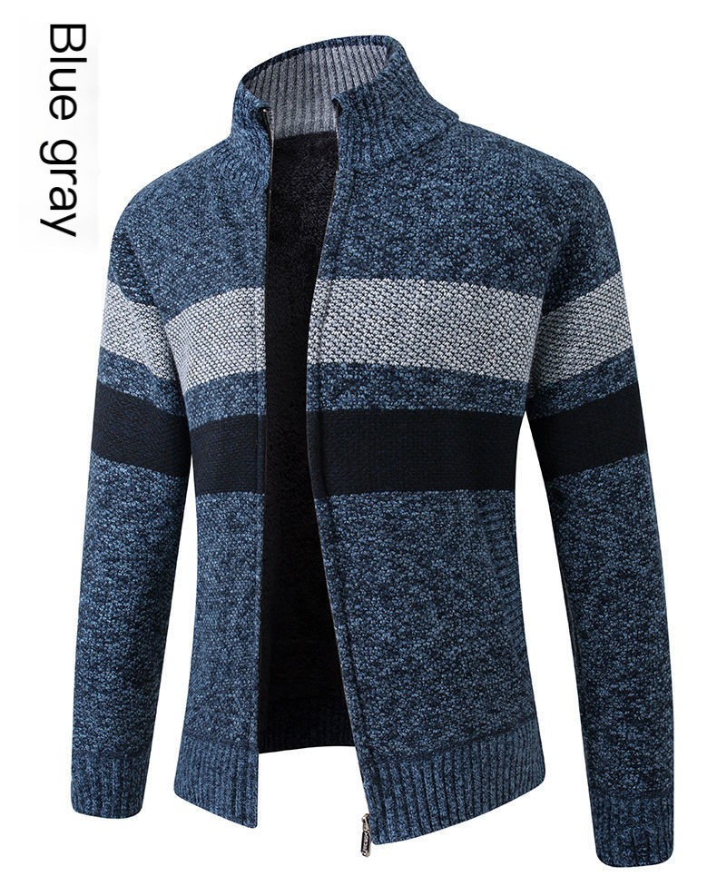 Autumn and winter men's new plus velvet thick sweater fashion stand collar sweater cardigan zipper jacket coat trendy