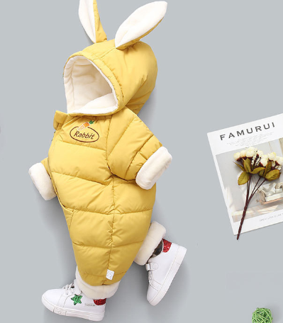 Autumn Winter Overall For Children Infant Down Cotton Thickened Clothes Hooded Cartoon Baby Boys Girls Jumpsuit Baby Romper