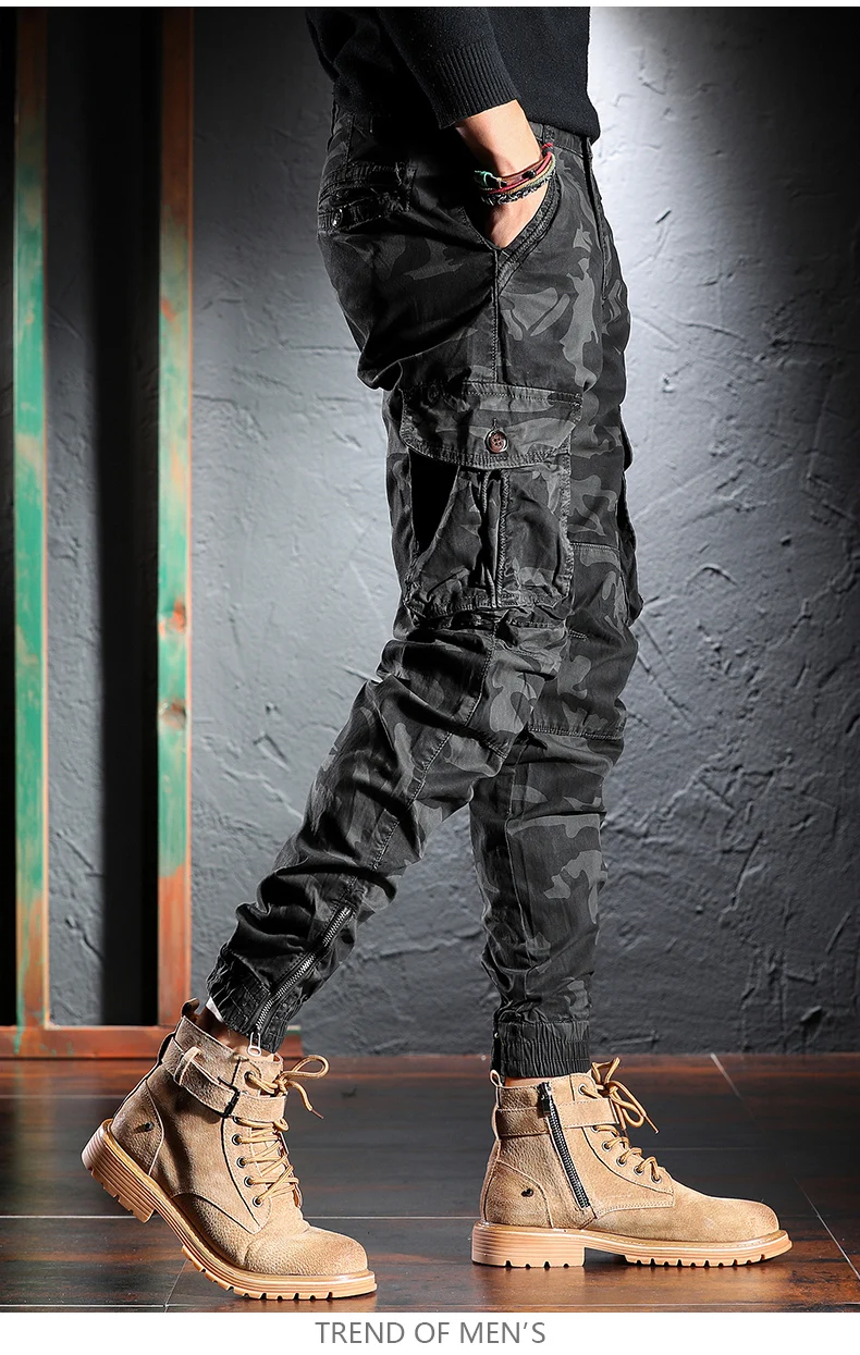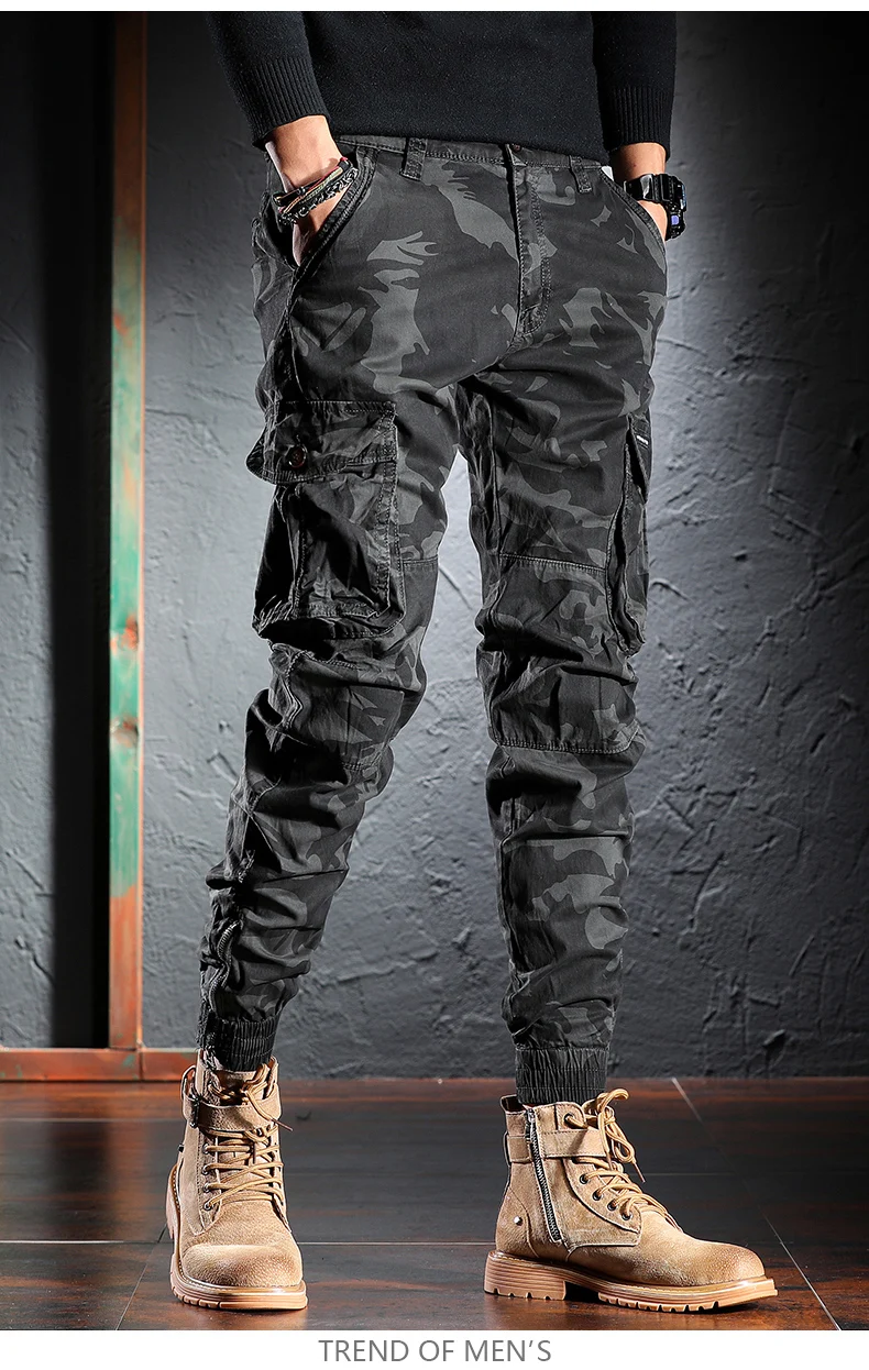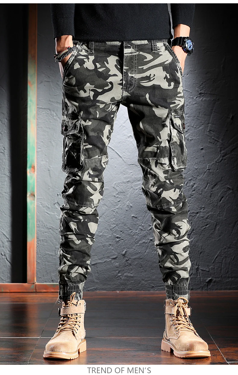 BAPAI Men's Fashion Oversized Camouflage Cargo Pants Outdoor Grey Pants Multifunctional Workt Trousers Thin Jungle Camping Pants