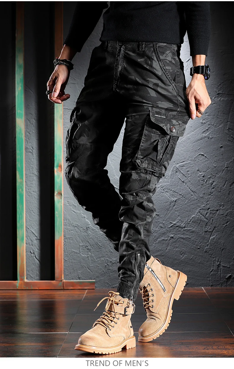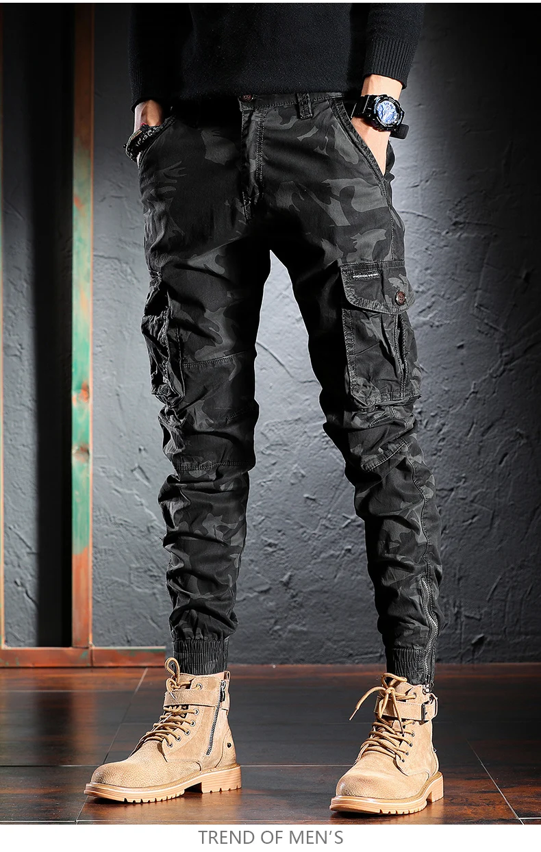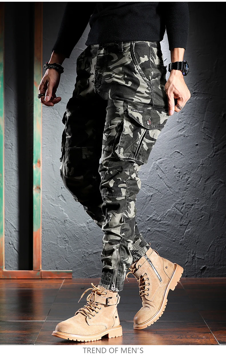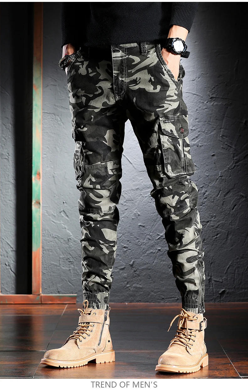 BAPAI Men's Fashion Oversized Camouflage Cargo Pants Outdoor Grey Pants Multifunctional Workt Trousers Thin Jungle Camping Pants