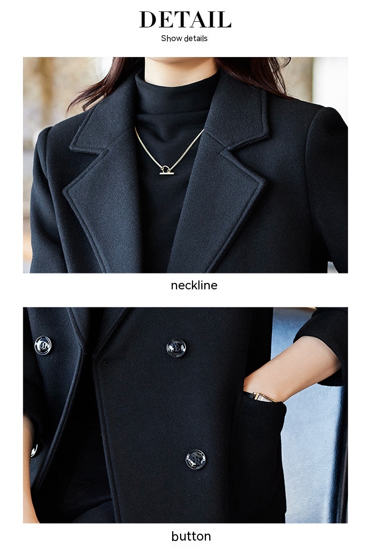 Black Double Breasted Coat Autumn And Winter New Women's Suit Jacket