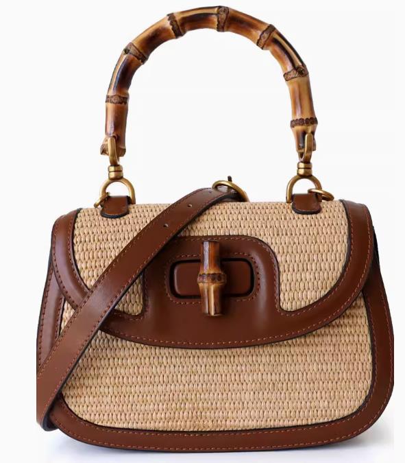 Bolsa de Palha Rattan e Couro Genuíno Amélia