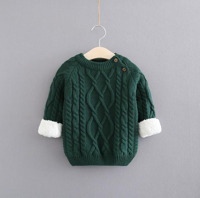 Boys sweater girls plus velvet thickened autumn and winter new baby infant children's bottoming knitted sweater pullover round neck sweater