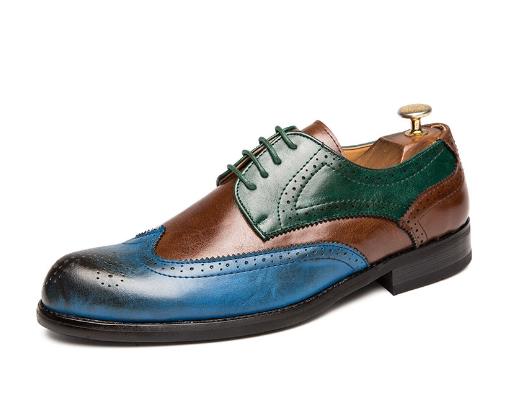 British Fashion Carved Color Matching Leather Shoes Cowhide Business