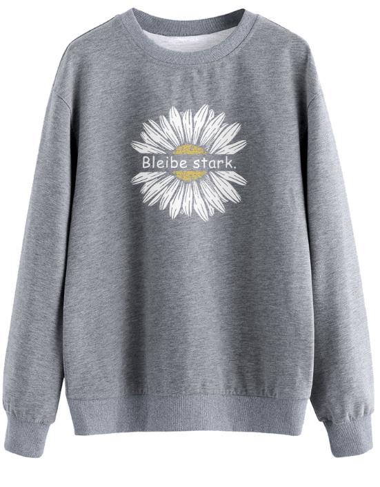 Casual Printed Fall Winter Long-sleeved Pullover Loose Round Neck Sweater