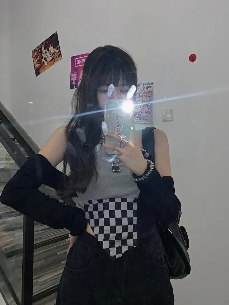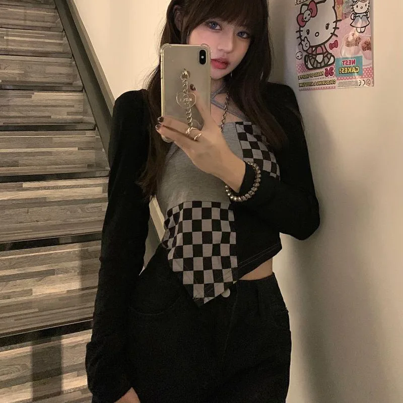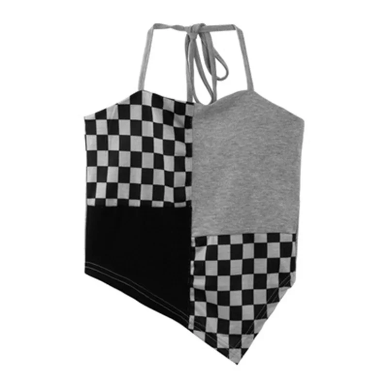 Checkered neck hanging small suspender vest for women in large size, fat and spicy girl trend, irregular short sweet and spicy top