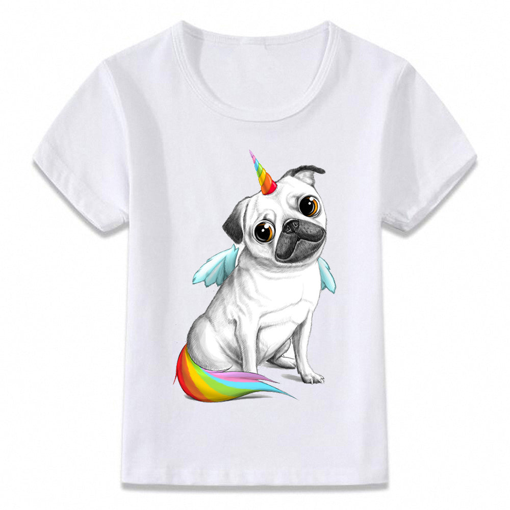 Children T Shirt Unicorn Cat and Pug T-shirt kids summer clothes Boys and Girls Toddler top Tees olome8271