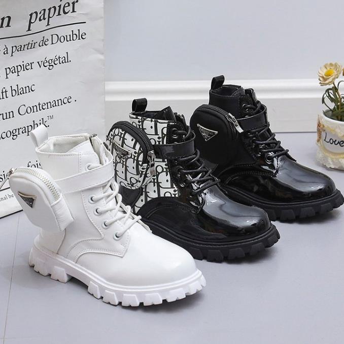 Children's Martin Boots Girls Leather Boots Fashionable Autumn And Winter New Middle And Older Children's Cotton Shoes Baby Bright Leather Surface Short Boots