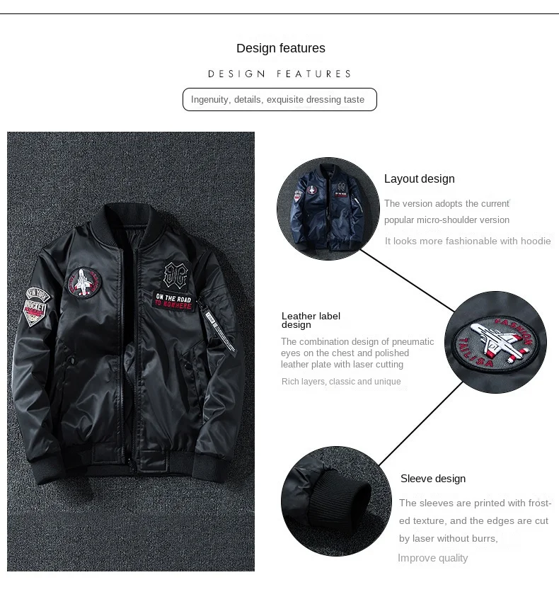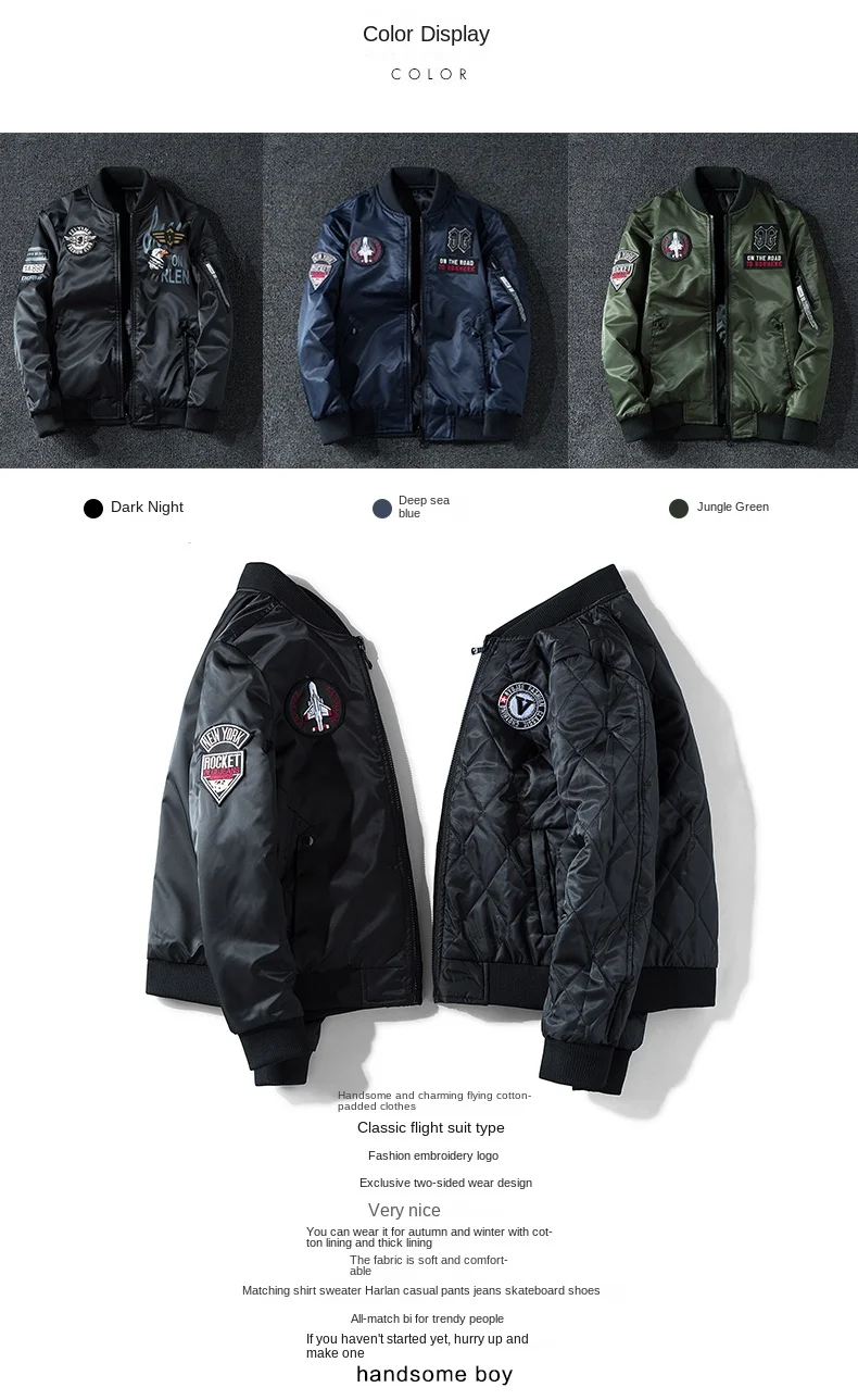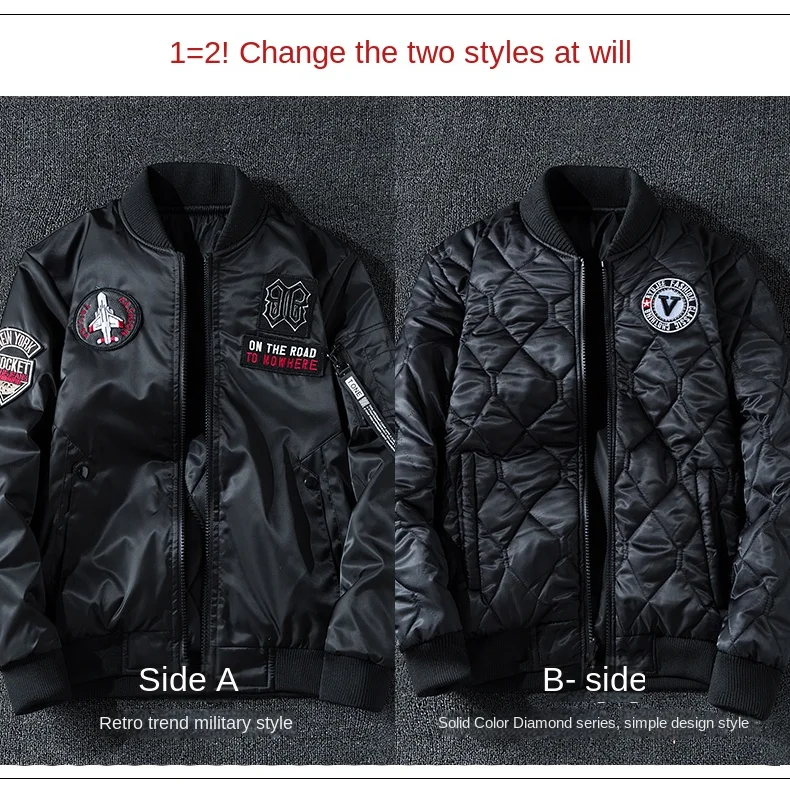 Coat Men's Air Force Pilot Jacket MA1 Autumn/Winter Baseball Suit Trendy Brand Double Sided Thickened Large