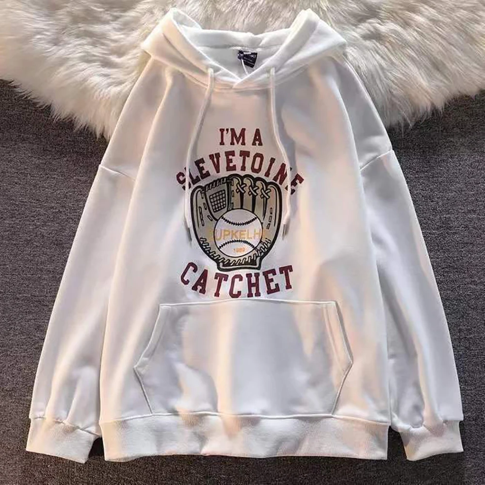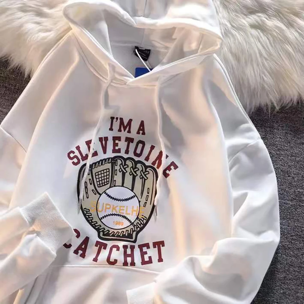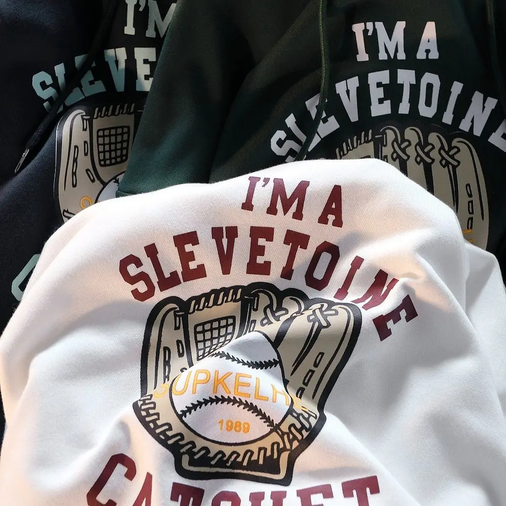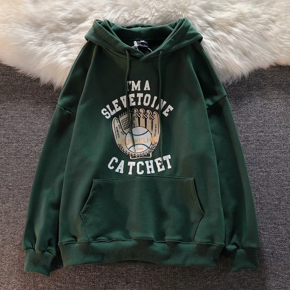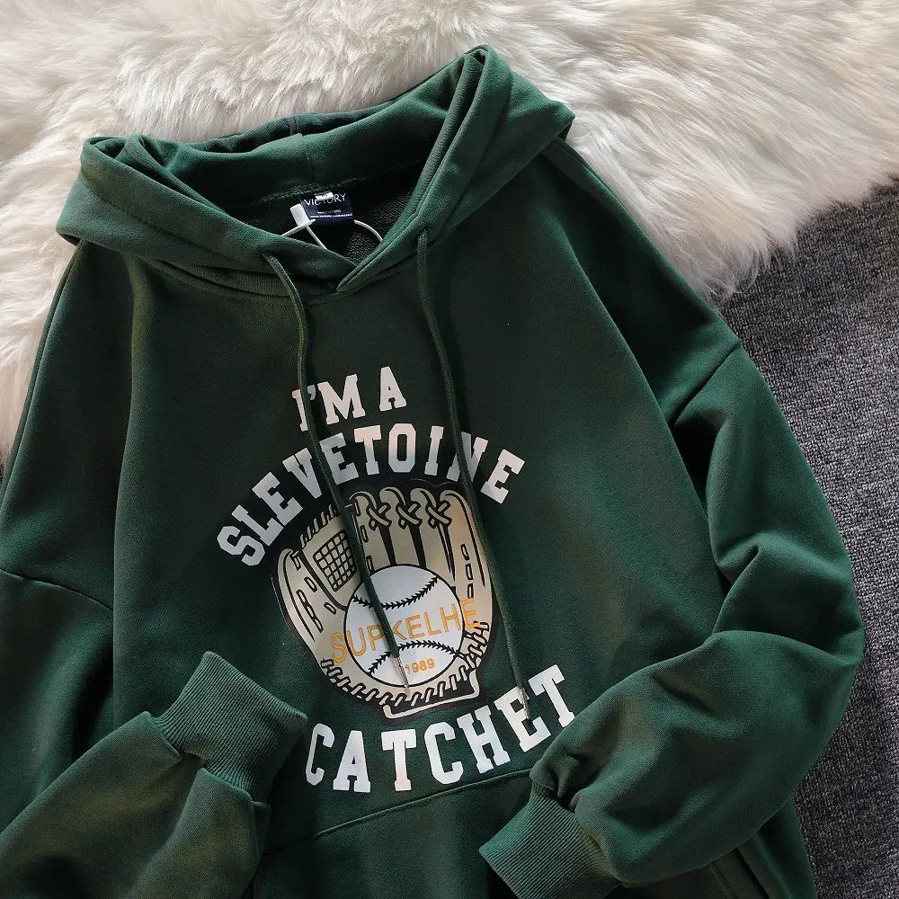 Dark green American baseball gloves printed Hoodie youth fashion Sweatshirt fall Vintage men's and women's loose Hoodie