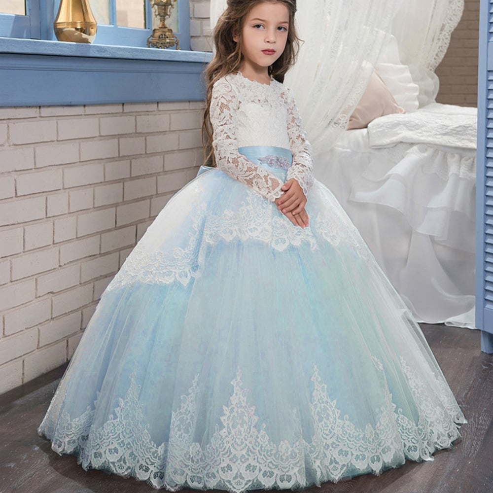 Double Lace Long Sleeve Flower Girl Pettiskirt Wedding Dress