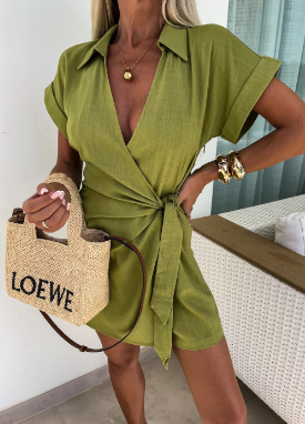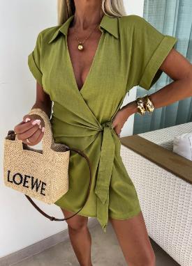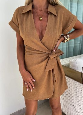 Effen jurk met draaikraag - Rood Oranje
