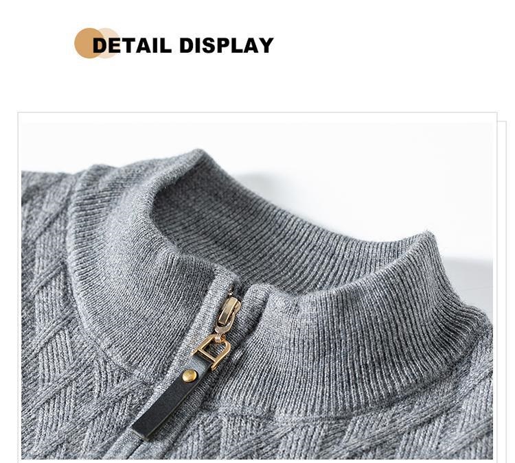 Fall Winter Men Half Zip Sweater Diamond Lattice Sweater