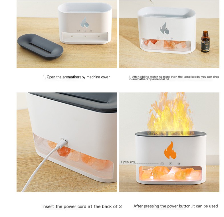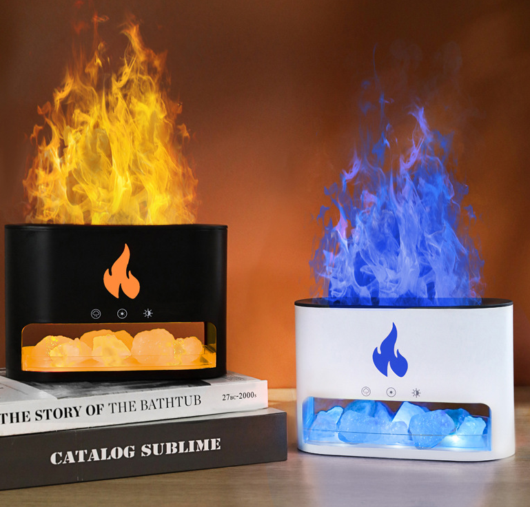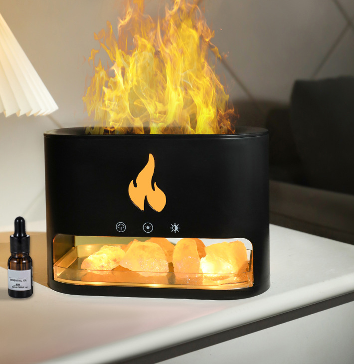 Fireplace Humidifier Himalayan Crystal Salt Rock Fire Lamp Volcano Air Humidifier Flame Aroma Smell Essential Oil Diffuser for Home 5V 2A