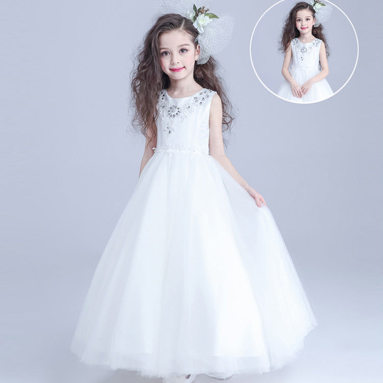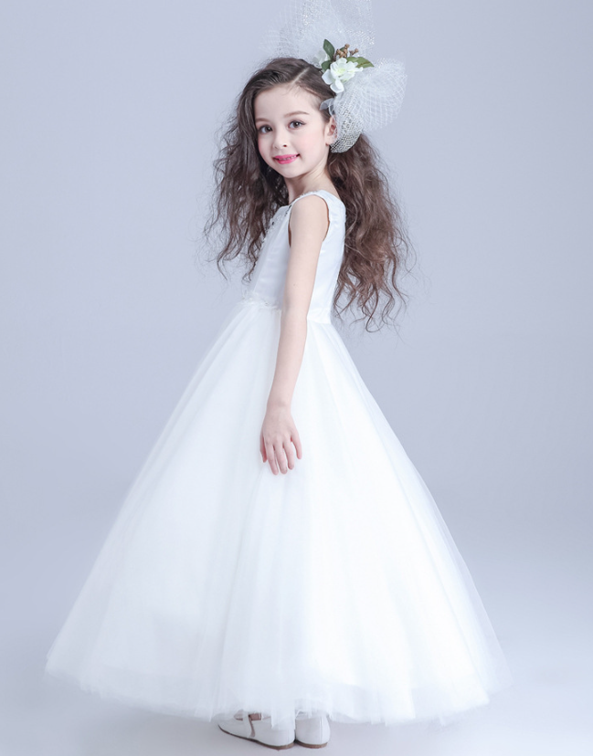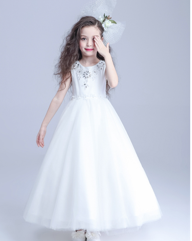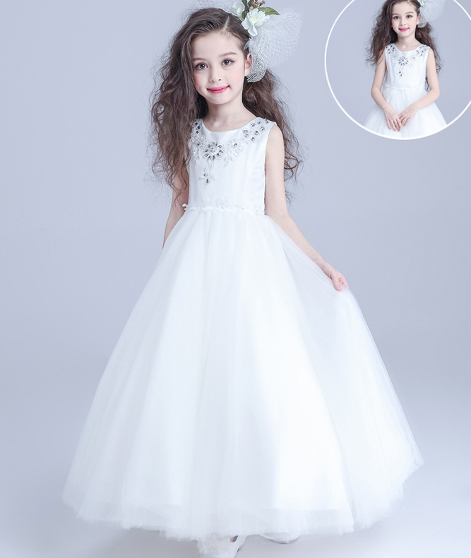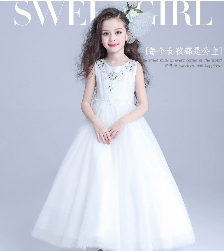 Girls dress flower girl dress princess dress wedding dress children long sleeved costumes and long chair