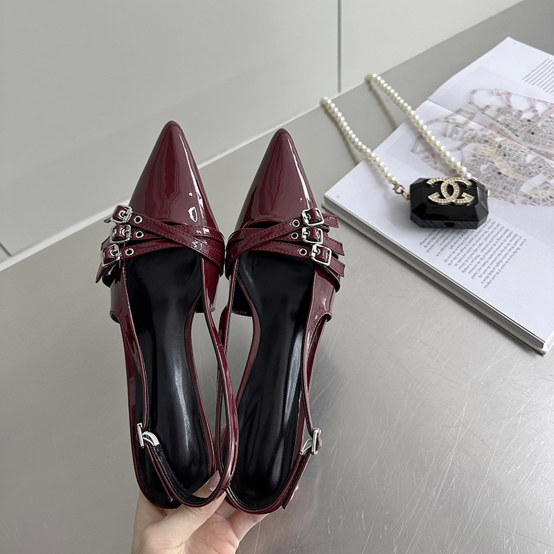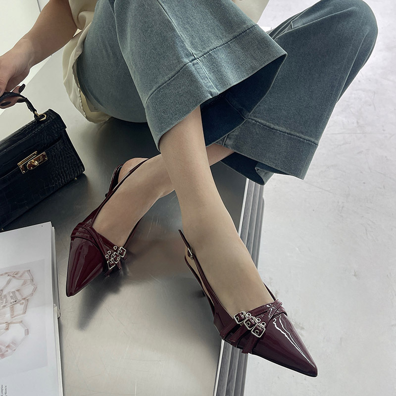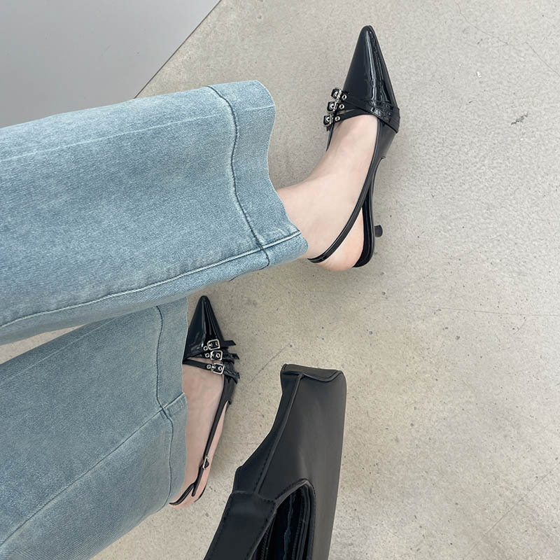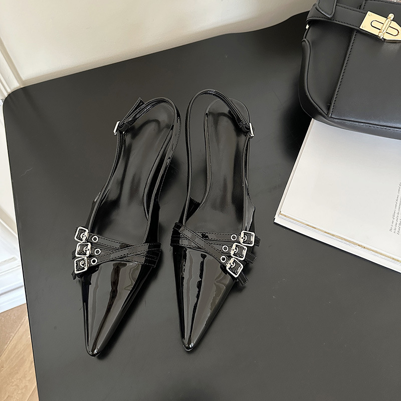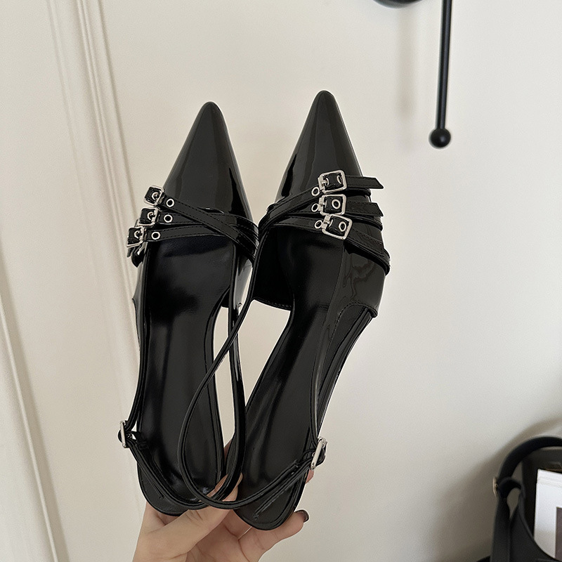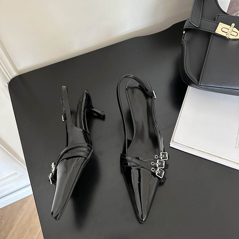 heels one-strap high heel shoes 2024 spring new fashion patent leather women's shoes pointed toe belt buckle stiletto heel sandals