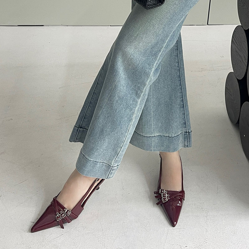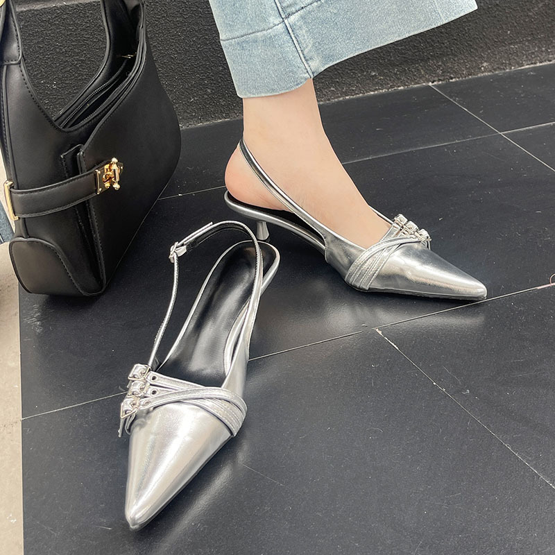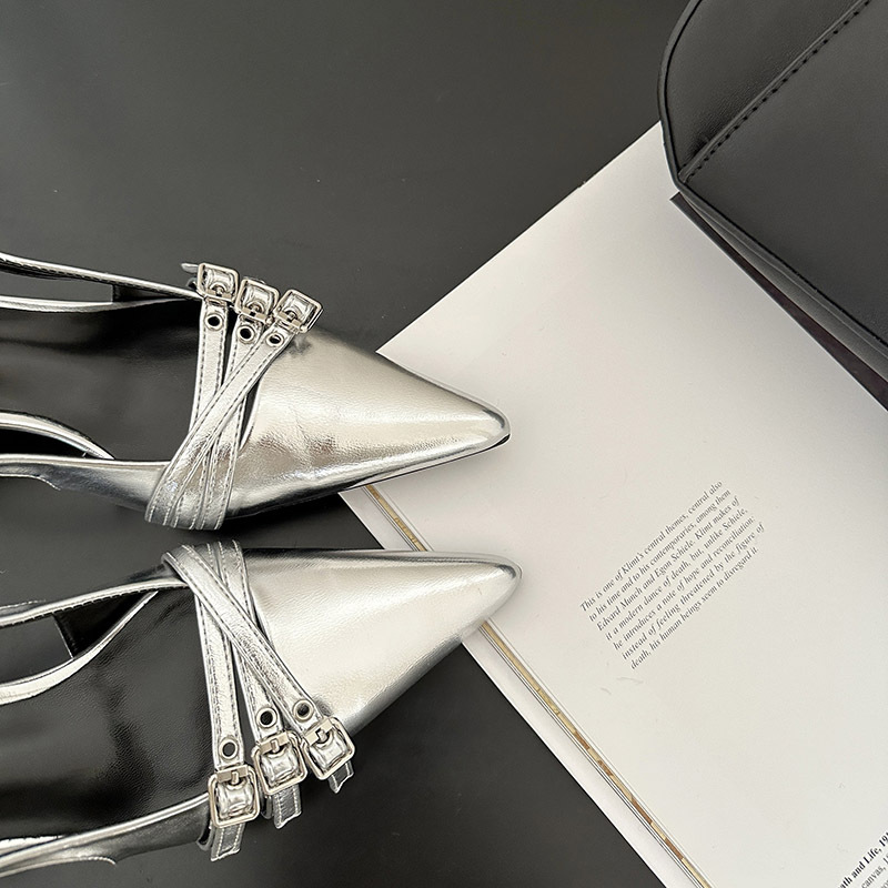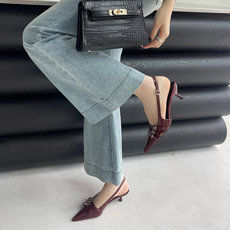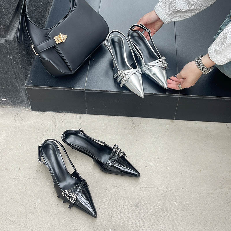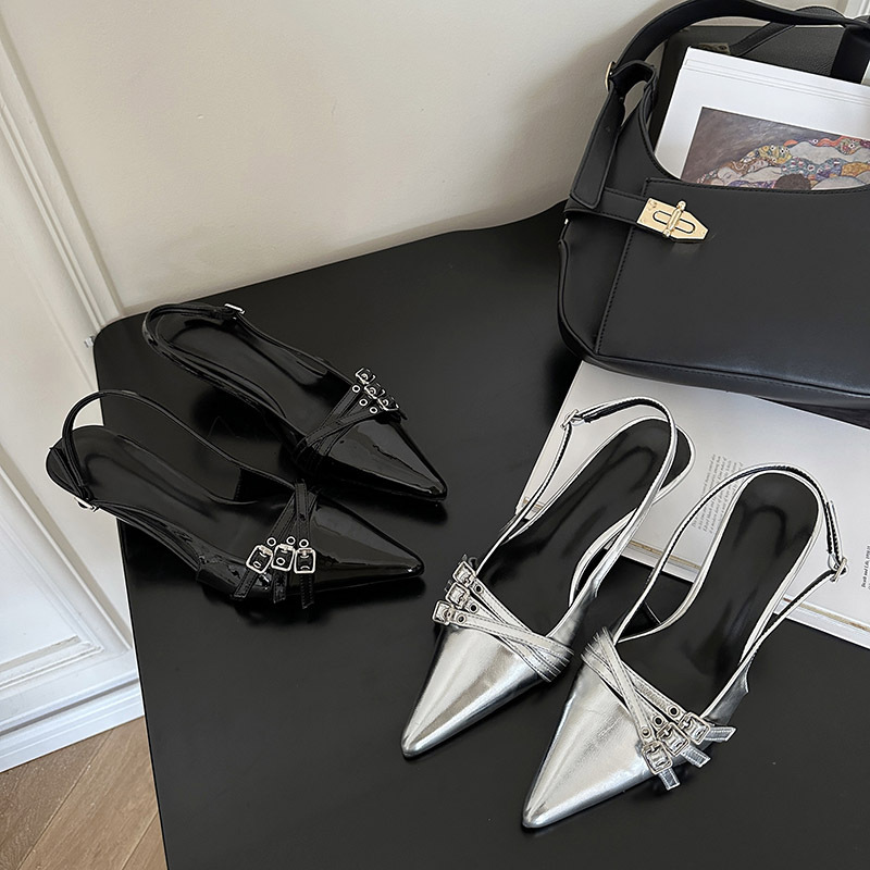 heels one-strap high heel shoes 2024 spring new fashion patent leather women's shoes pointed toe belt buckle stiletto heel sandals
