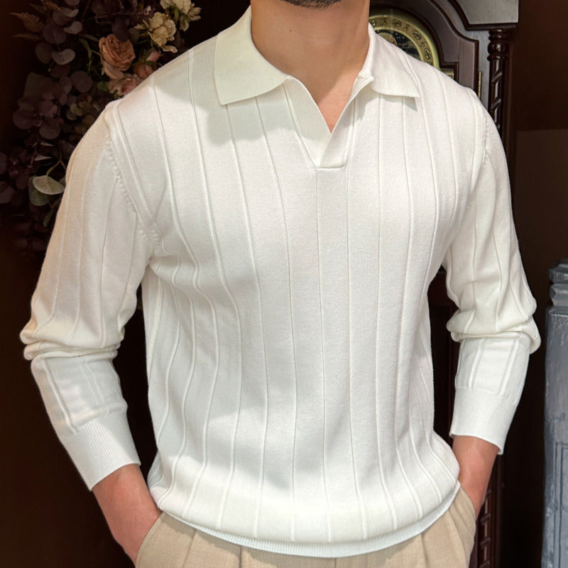 High Quality 2023 Fall Slim Bottomed Lapel Men Streetwear Knitted Sweater Solid Color Knit T-Shirt High Elasticity Long Sleeve