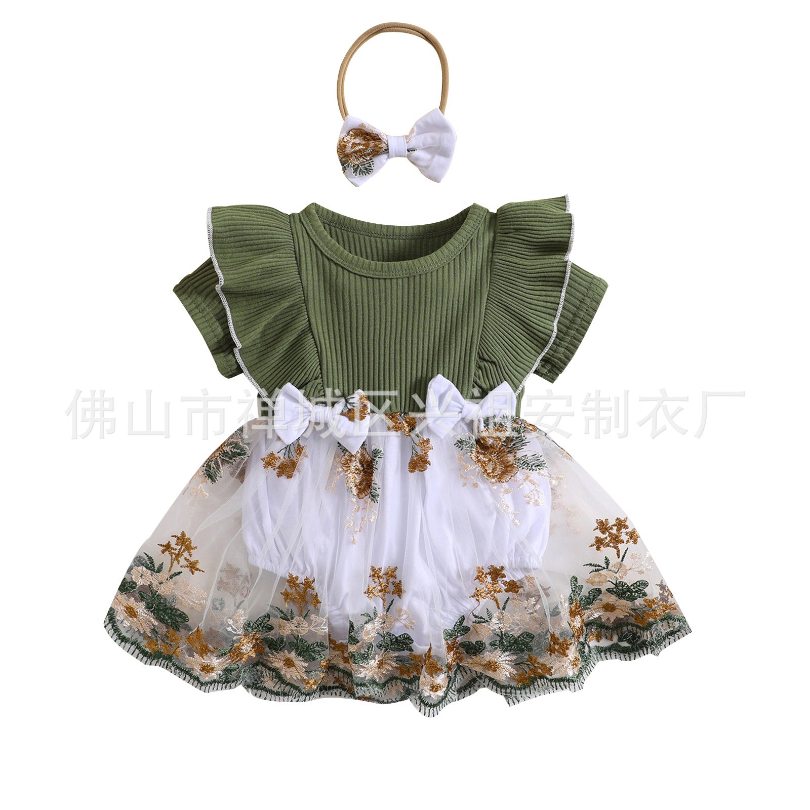 INS Summer New Toddler Baby Triangle Climbing Dress Mesh Dress Pit Strip Short Sleeve Stitching Princess Dress Cross-Border