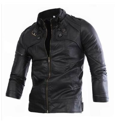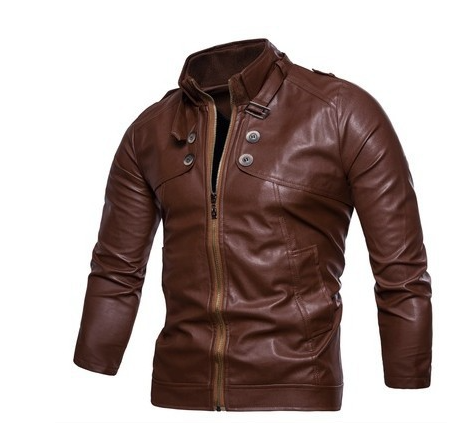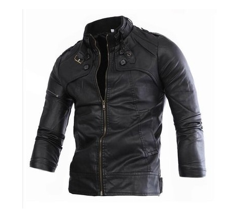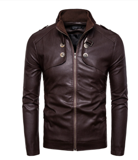 Men's leather jacket, short, slim-fitting, four-button leather jacket