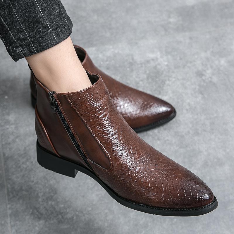 Large Size Men's British Pointed Leather Boots Autumn And Winter Men's British Working Wear High-top
