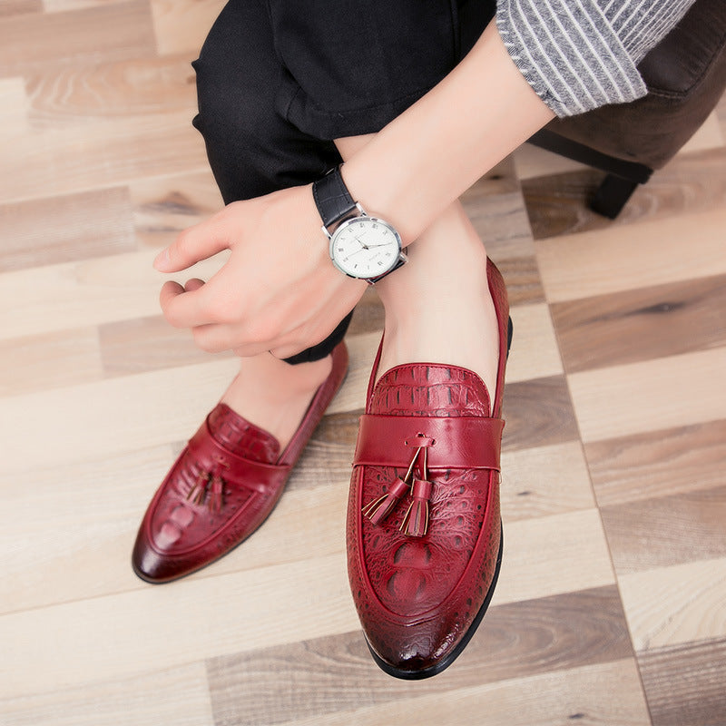 Leather Autumn New Korean style pointed tassel men's shoes British crocodile hair stylist Leather Mens shoes
