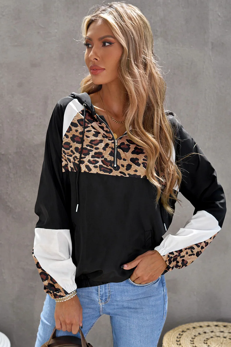 Leopard Print Women's Hoodie Thin 2024 Autumn/winter New Casual Side Pocket Pullover Top