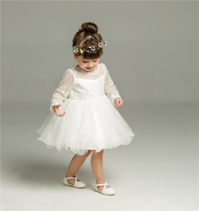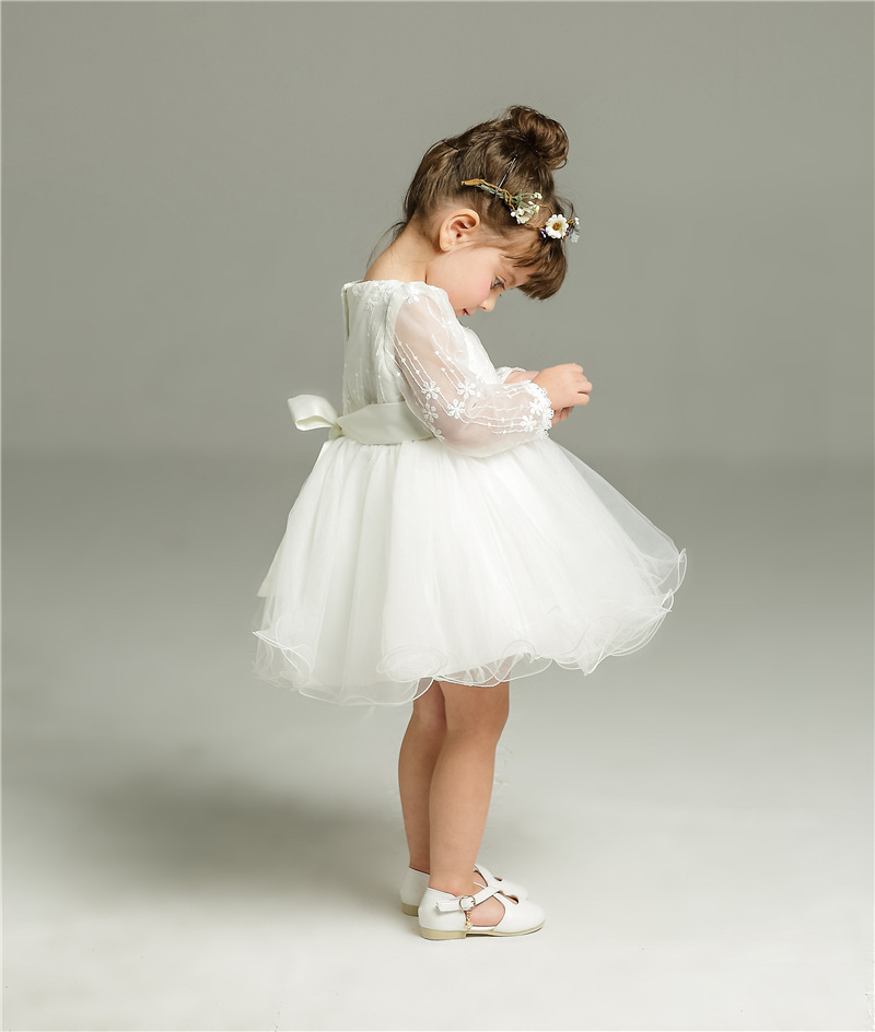 Long Sleeve Baby Wedding Dress Gauze Skirt