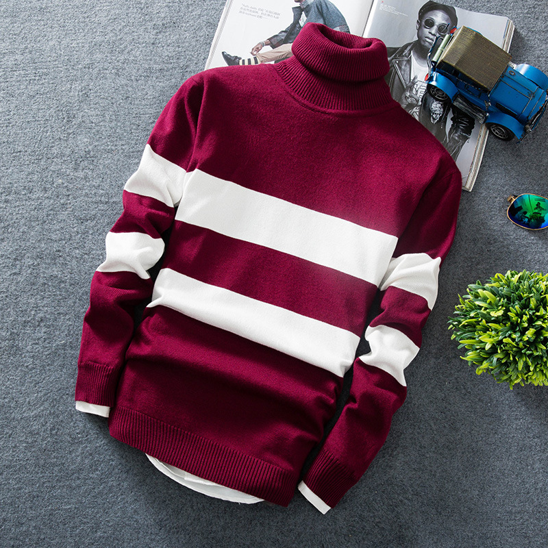Long-sleeved Colorblock Striped Turtleneck Sweater