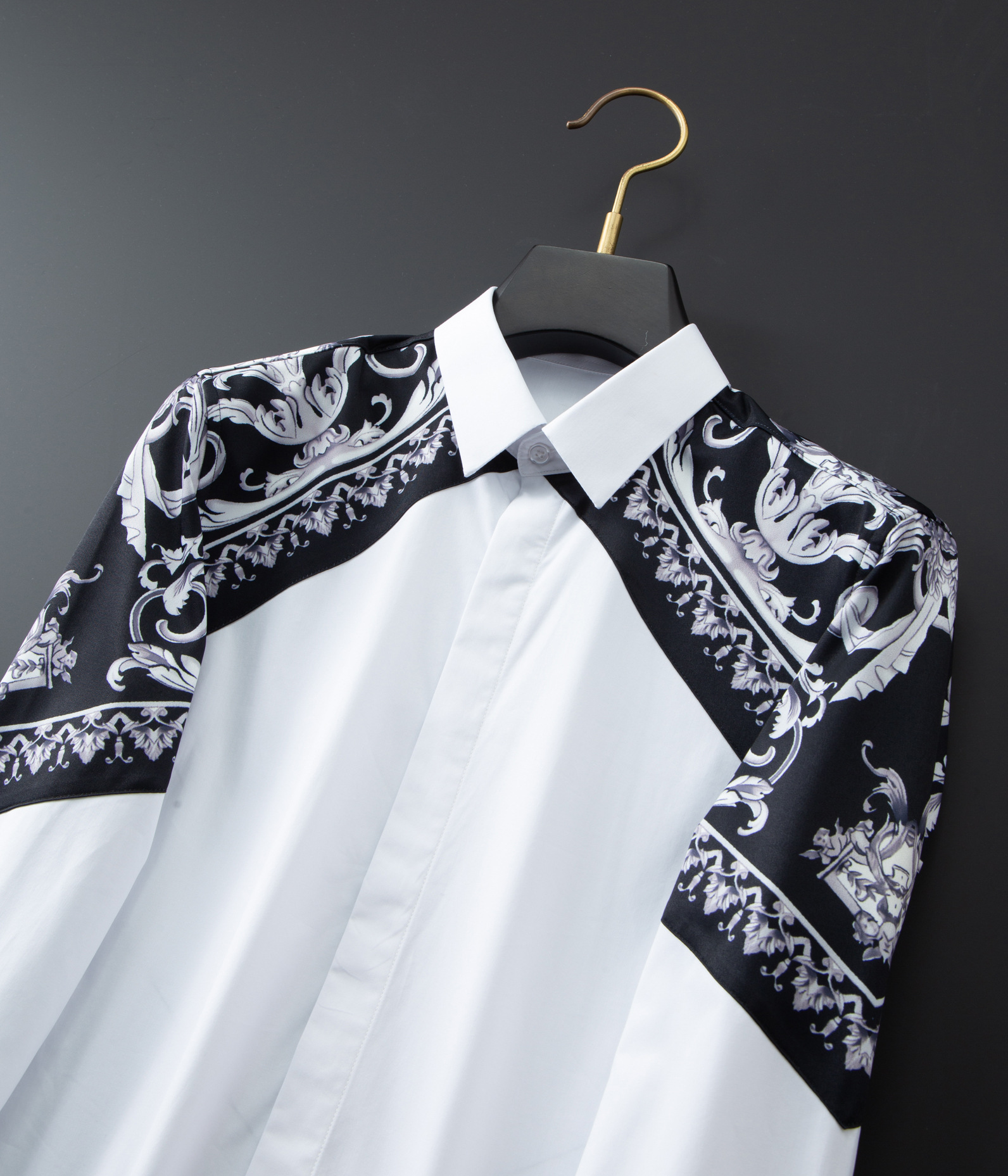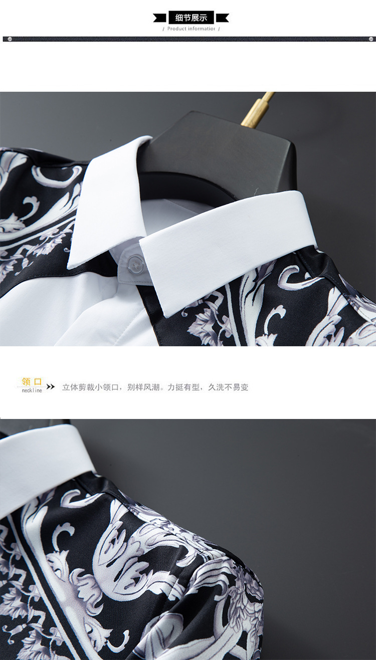 New style palace style contrast color stitching slim fit long sleeve shirt men's business casual personality shirt
