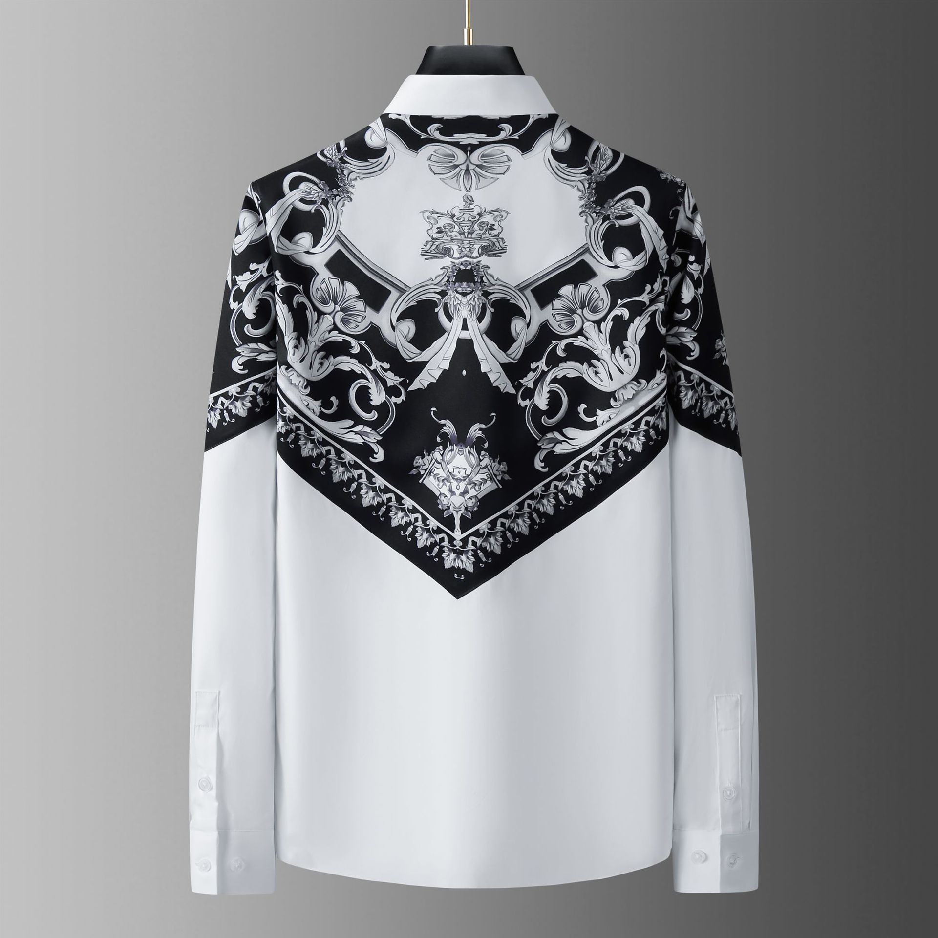 Luxury Palace Style Patchwork Shirt for Men Long Sleeve Casual Business Dress Shirts Slim Streetwear Social Party Banquet Blouse