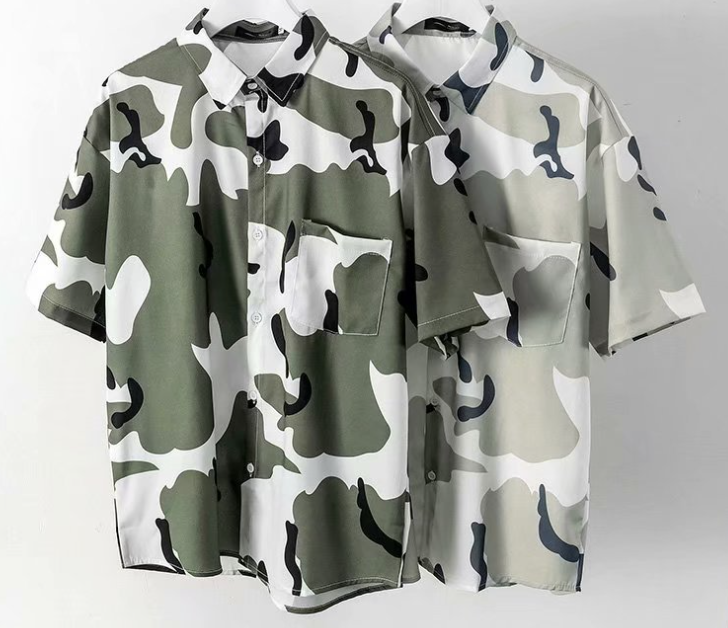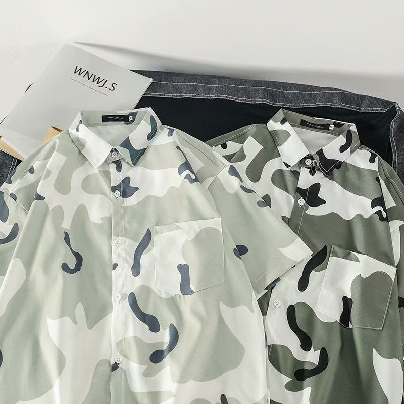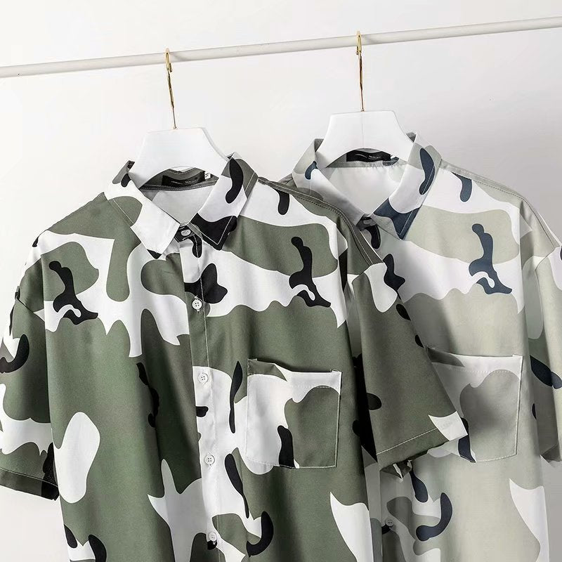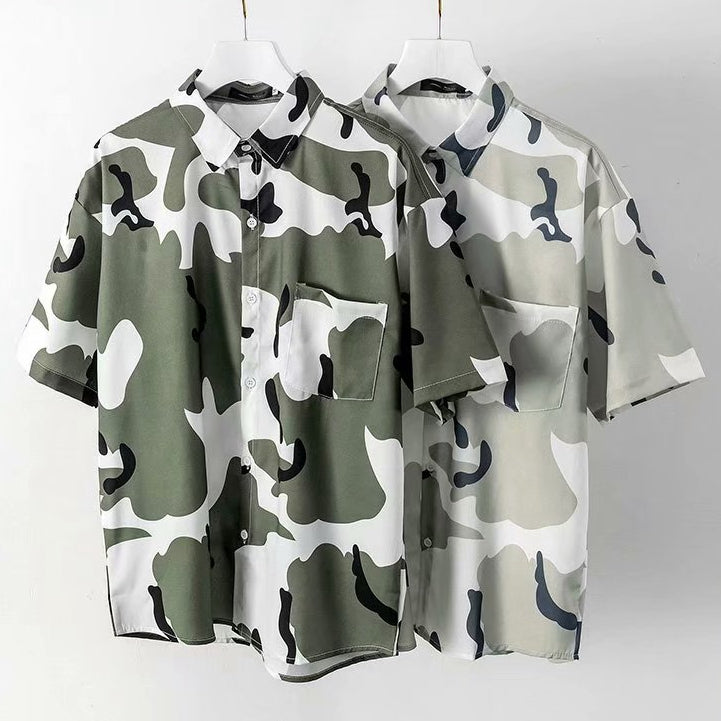 Men Camoflouge Harajuku Hawaiian Shirts Short Sleeve 2020 Summer Korean Streetwear Blouses Camo Cotton Button Up Shirt M-3XL