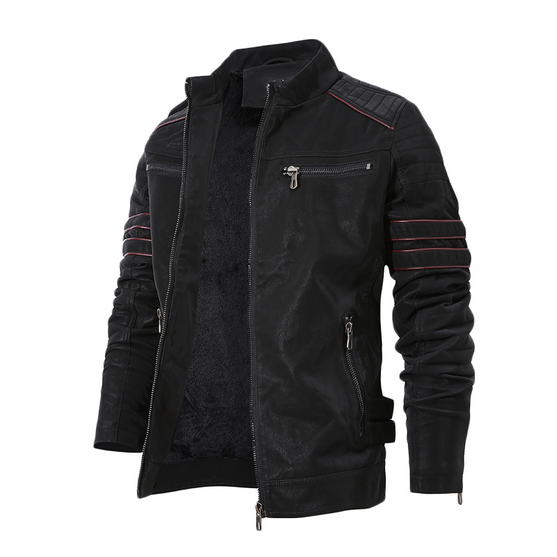 Men's Autumn And Winter Fleece Leather Jacket