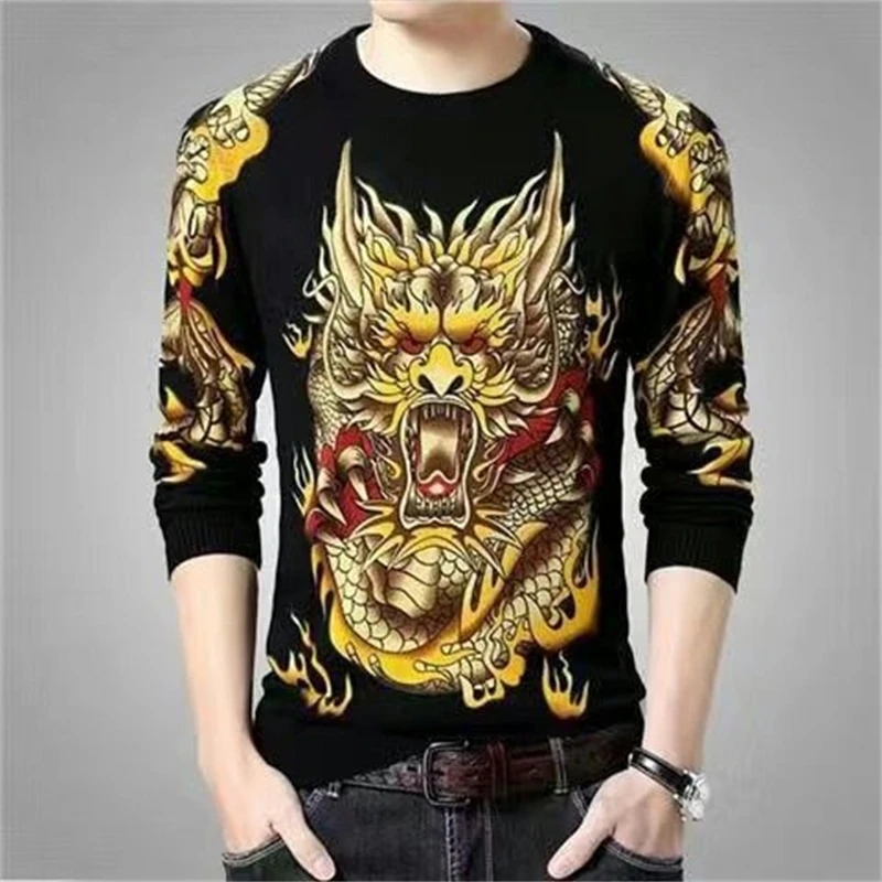 Men's Dragon Tiger T Shirt Casual 3D Printed Long Sleeve Magic Animal Graphic Top Tees High Street Pattern Tops Men Hip Hop Tee