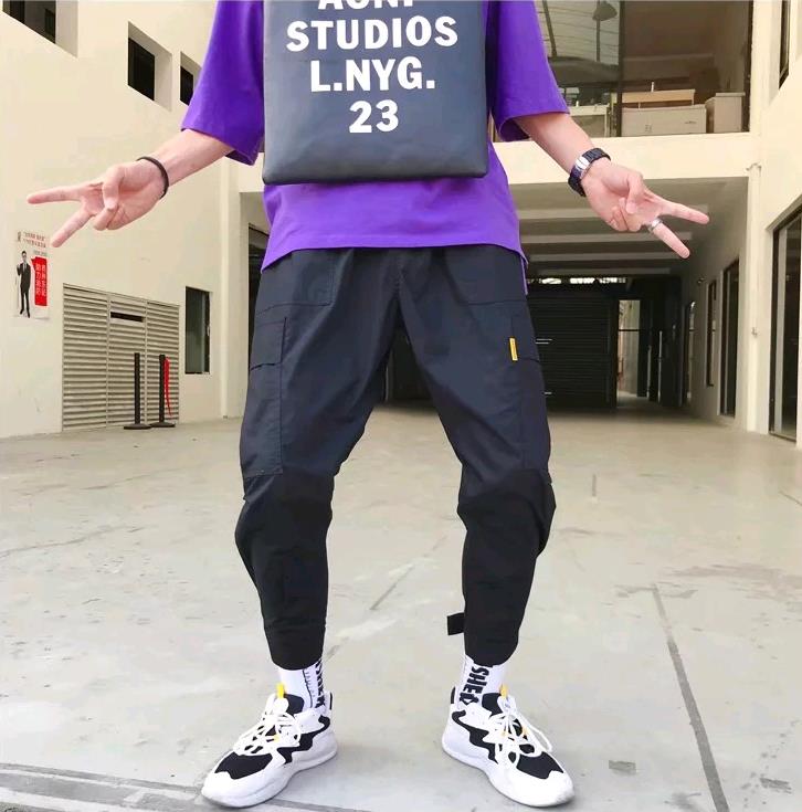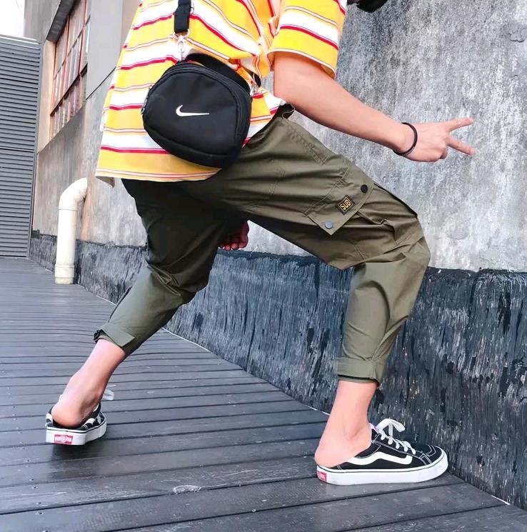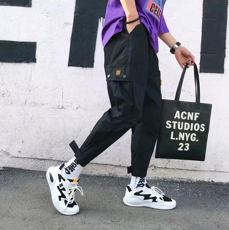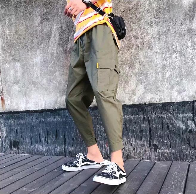 Men's nine pants loose Velcro beam pants autumn overalls men's casual harem pants