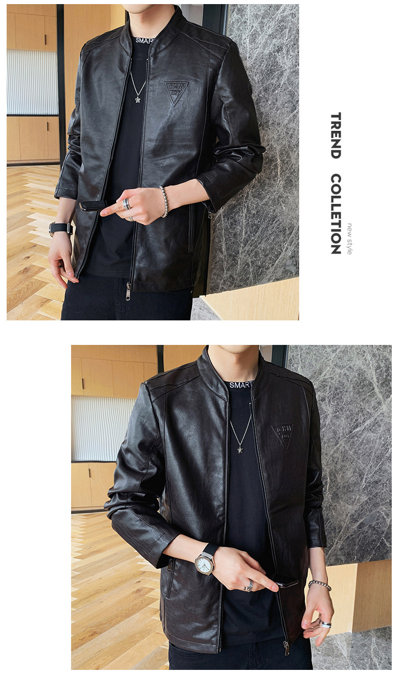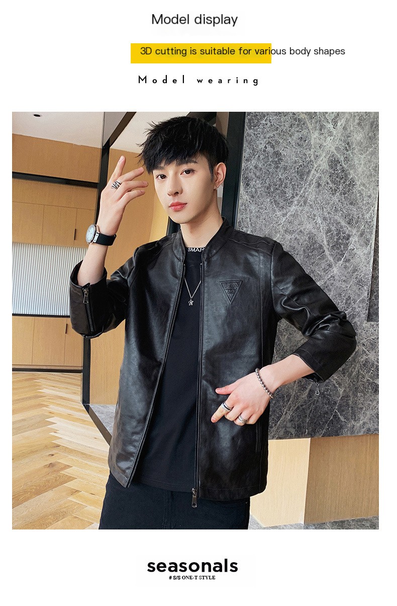 Men's street wear men's plus velvet short leather jacket trendy baseball collar leather jacket winter new motorcycle leather jacket