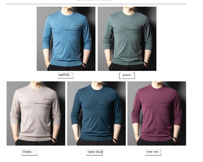 Middle-aged men business commuting round neck long-sleeved jacquard striped sweater Puyuan sweater spring and autumn