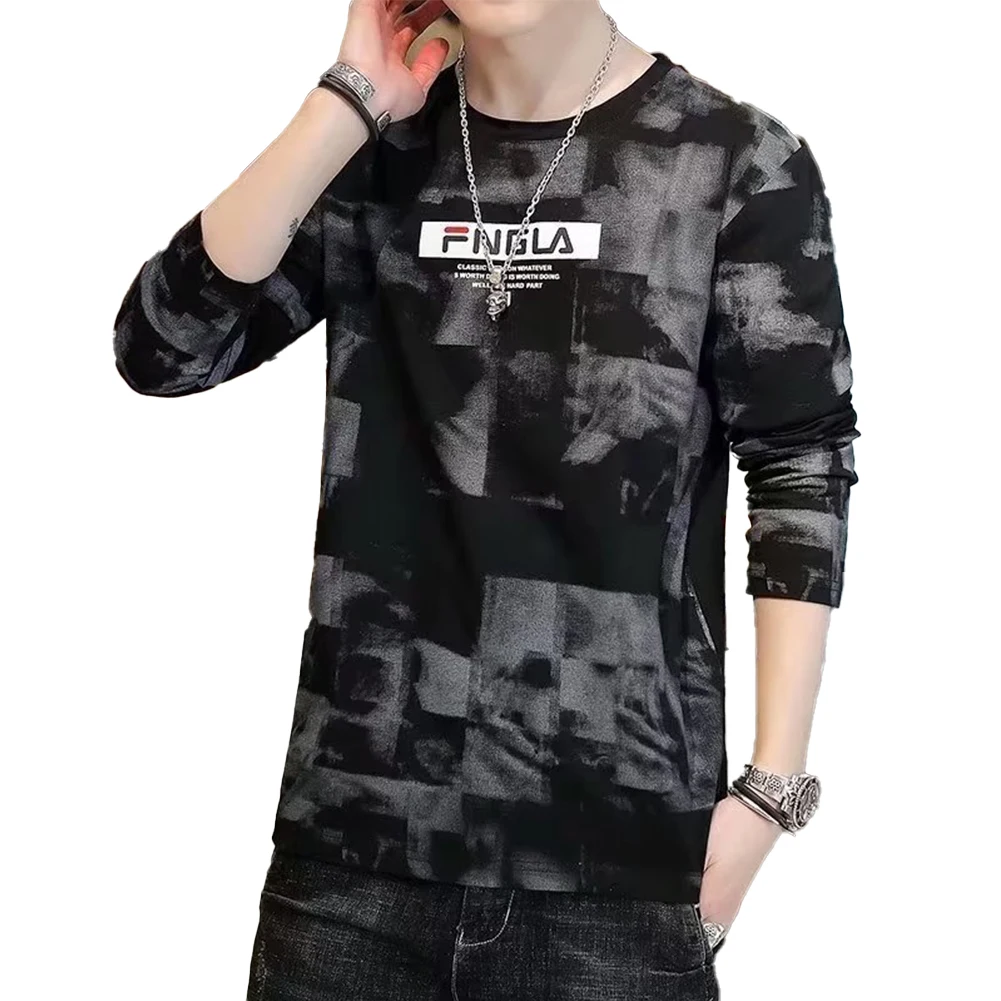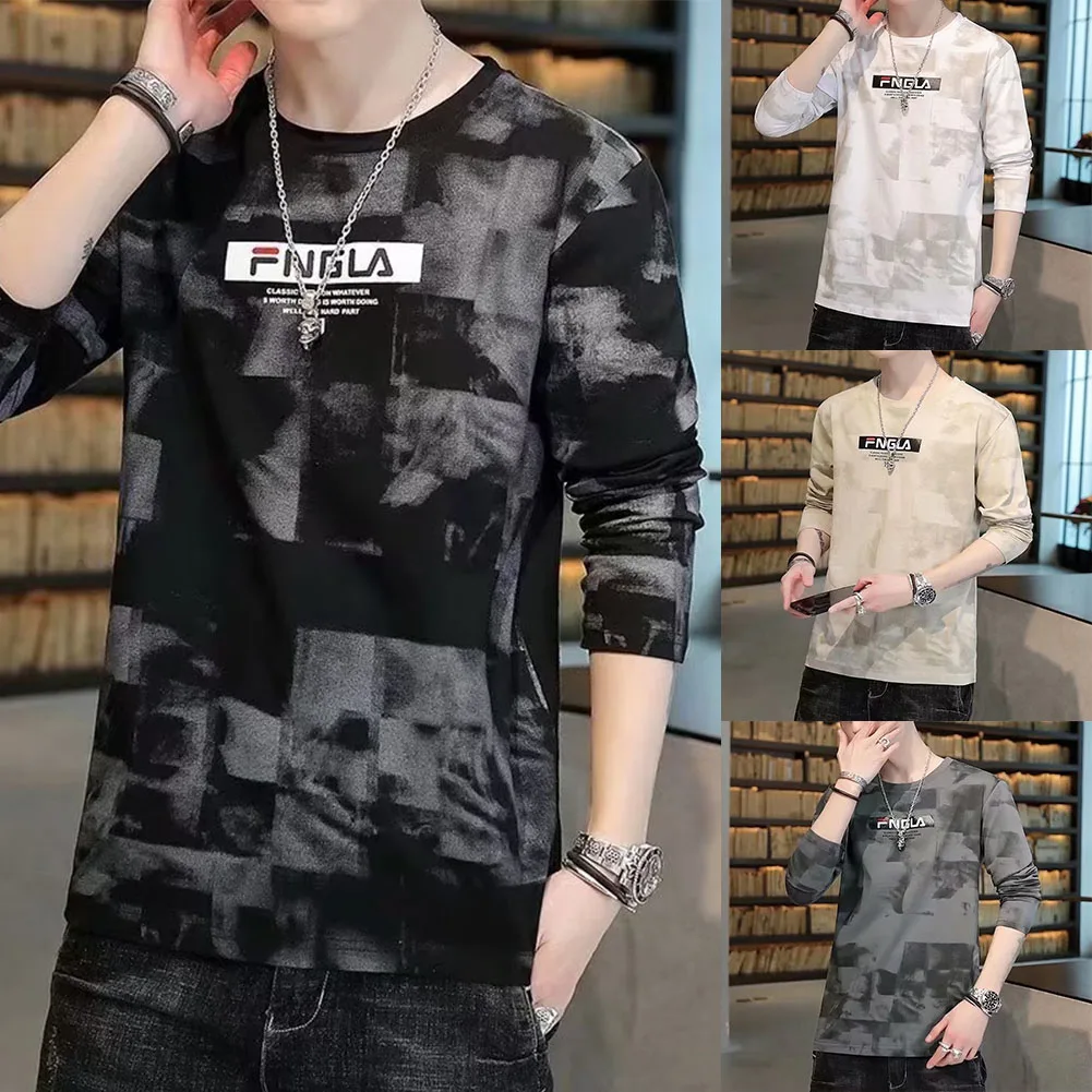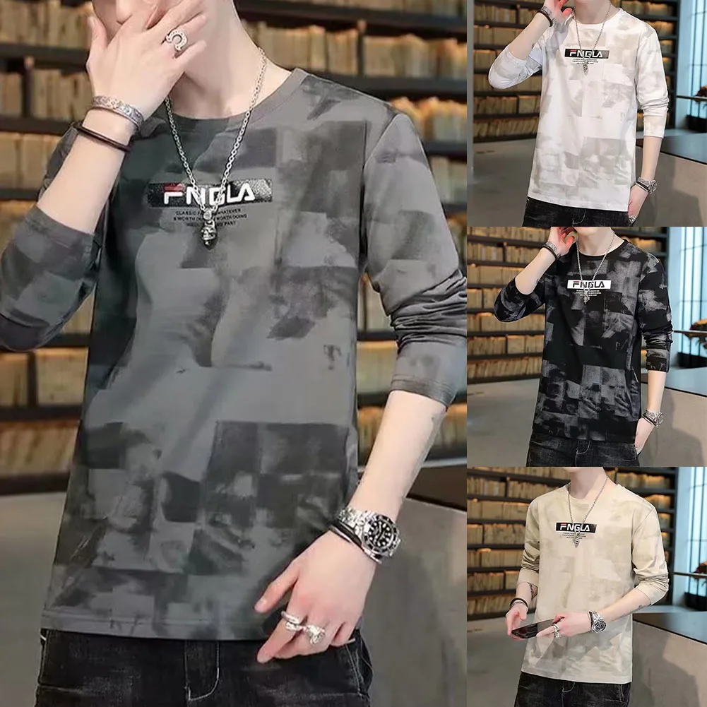 New Autumn Men's Print Long Sleeve T-Shirts Sports Crew Neck Tee Shirt Casual Blouse Pullovers Men Undershirts Tops
