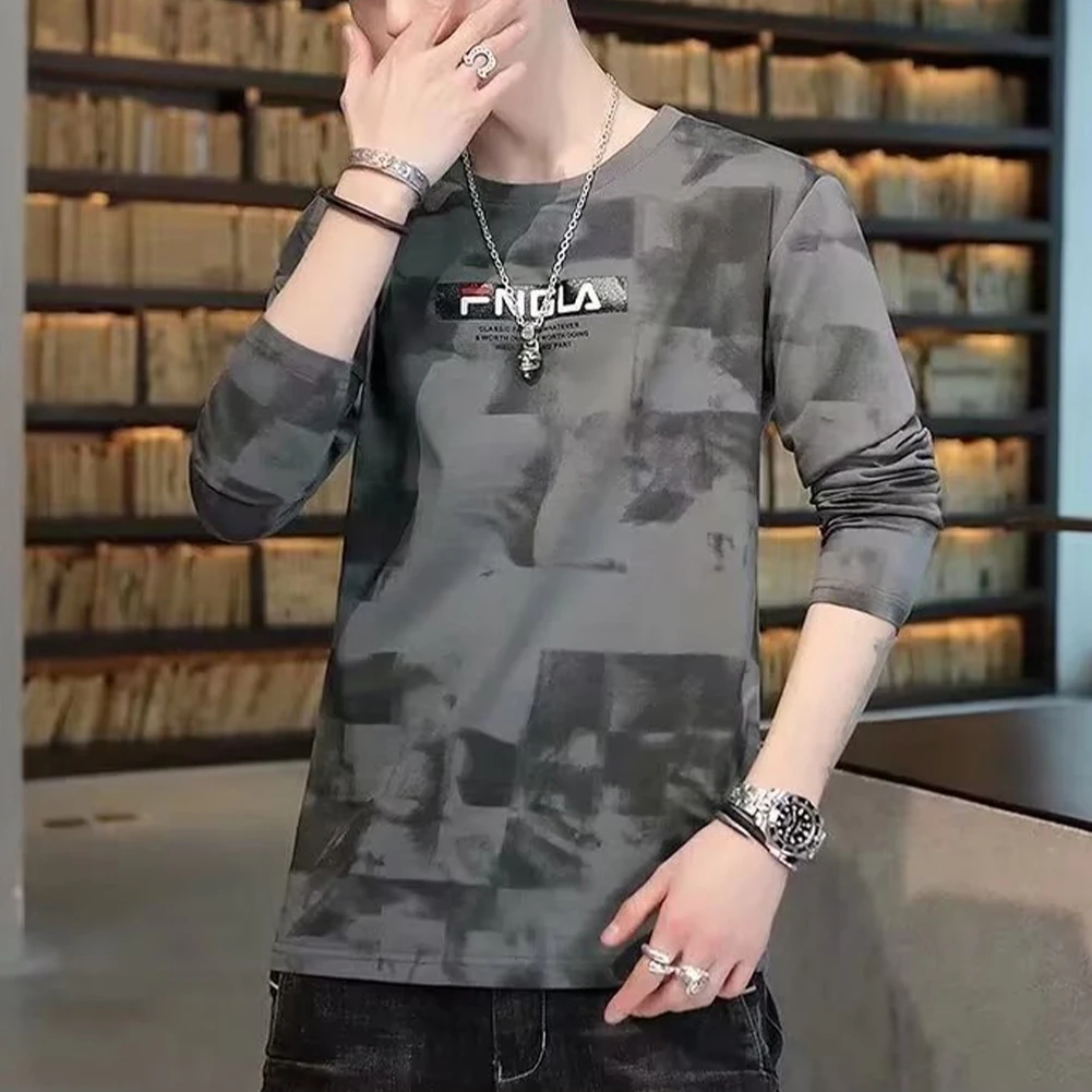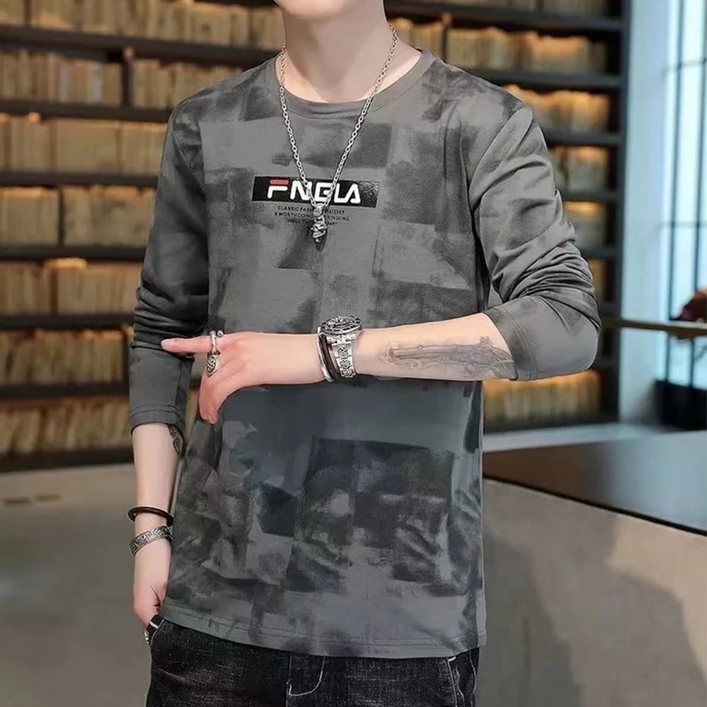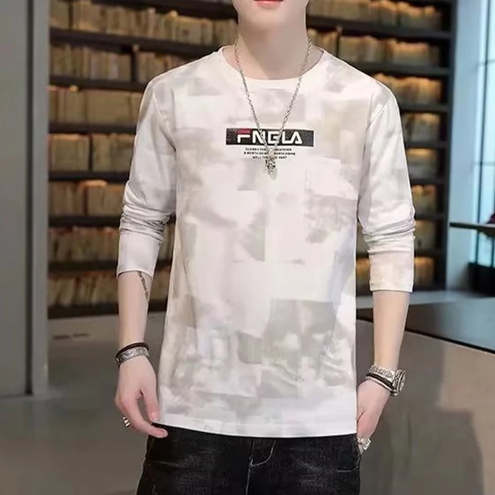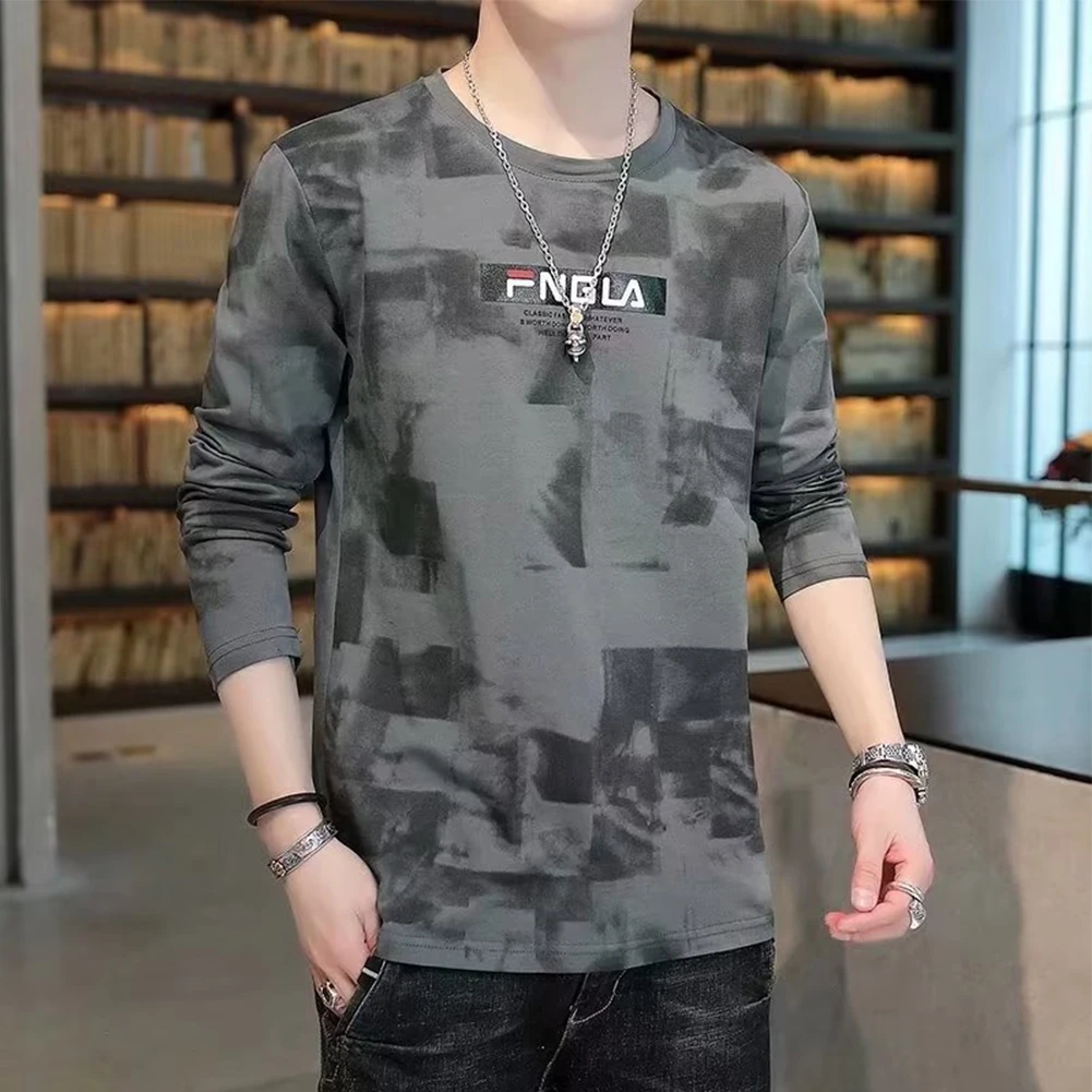 New Autumn Men's Print Long Sleeve T-Shirts Sports Crew Neck Tee Shirt Casual Blouse Pullovers Men Undershirts Tops