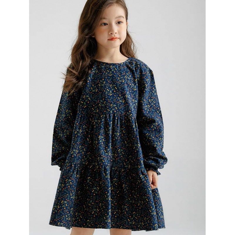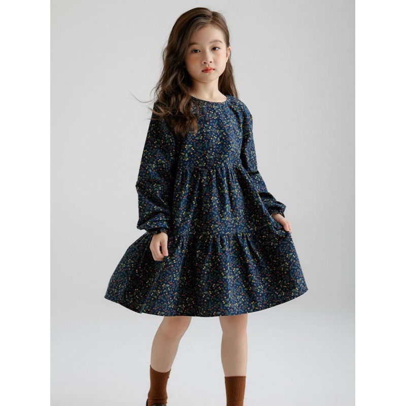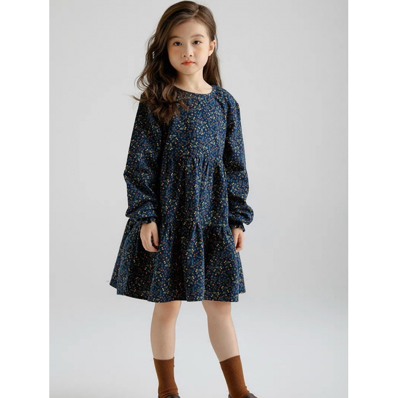 new girls bottoming skirt autumn and winter Korean children's clothing, lotus leaf big child long sleeve dress D008