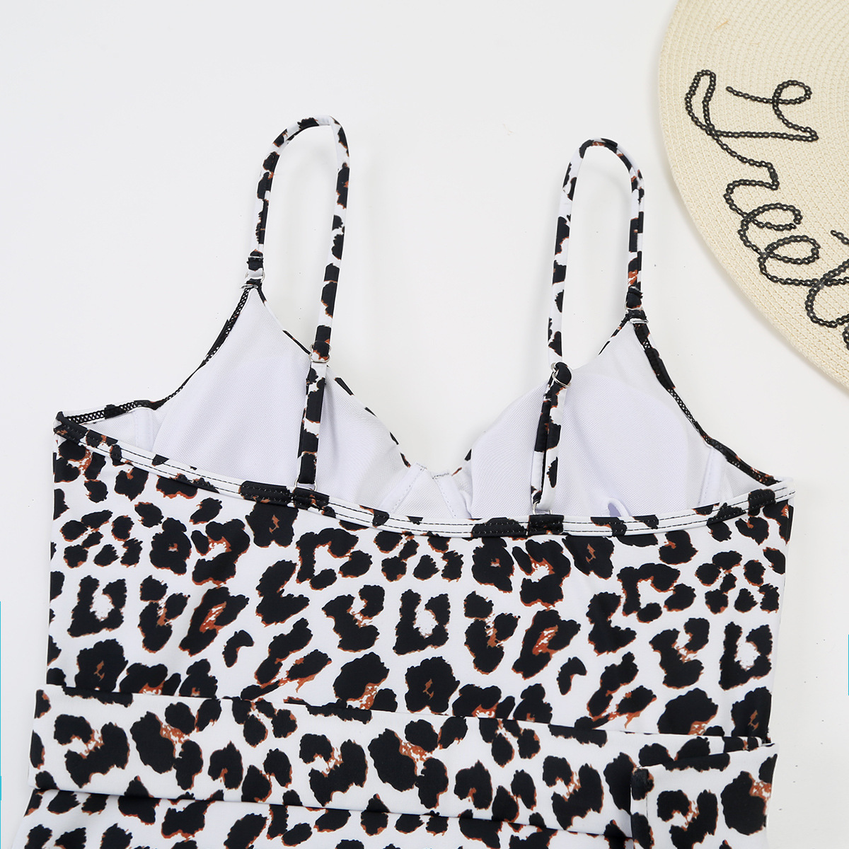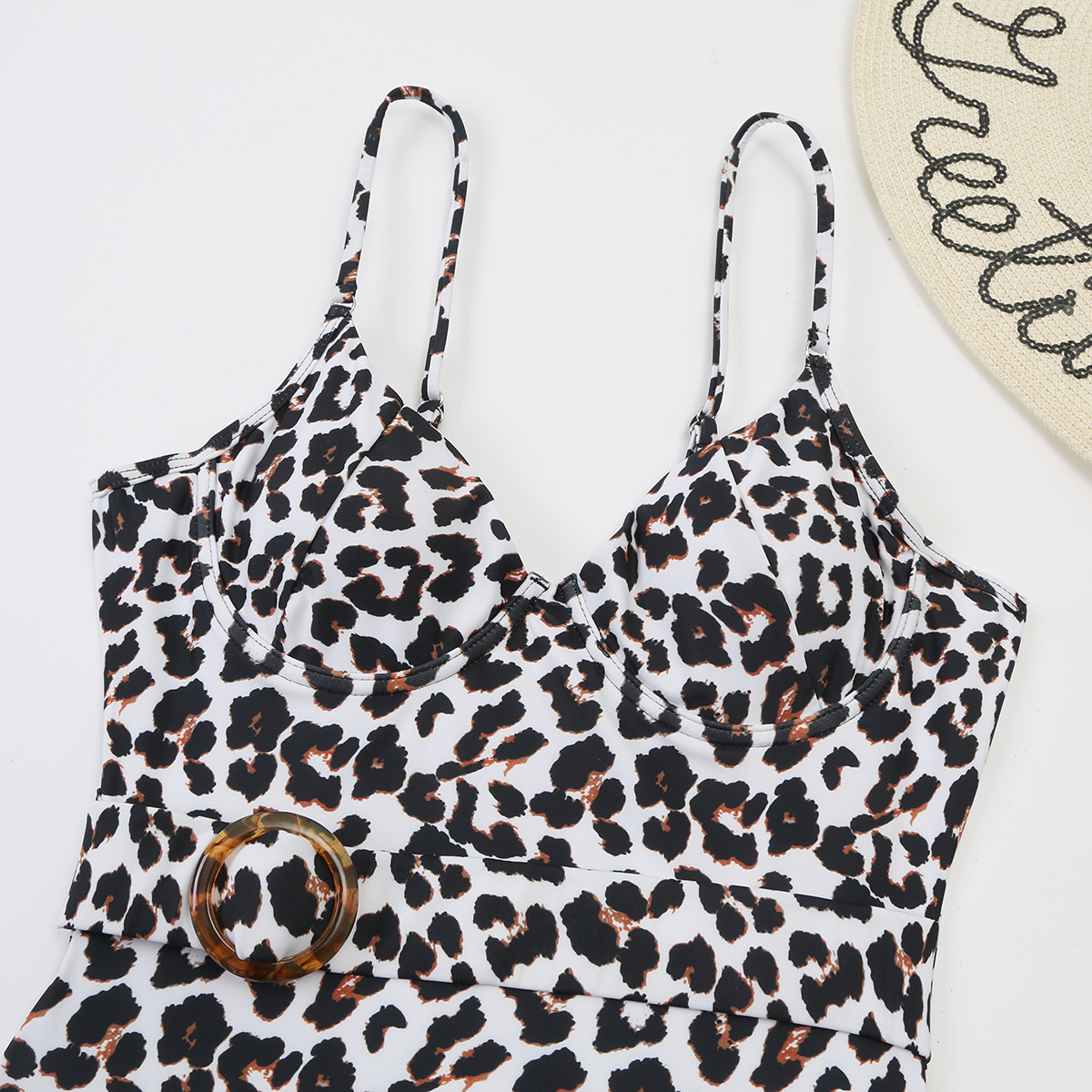 New Leopard-print One-piece Swimming Suit Strappy Low-cut Belt