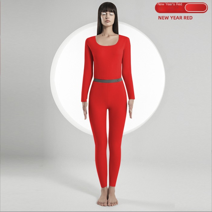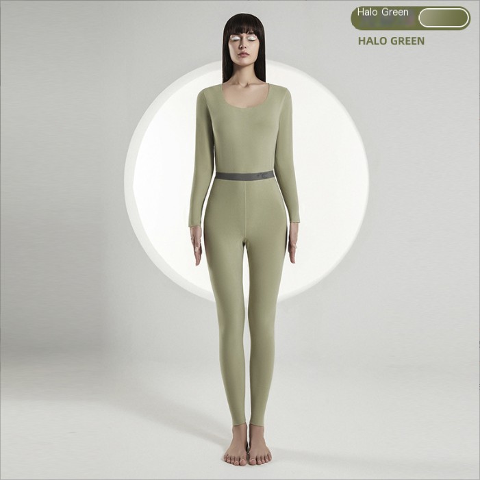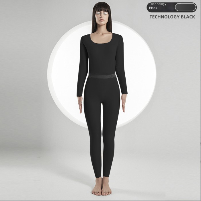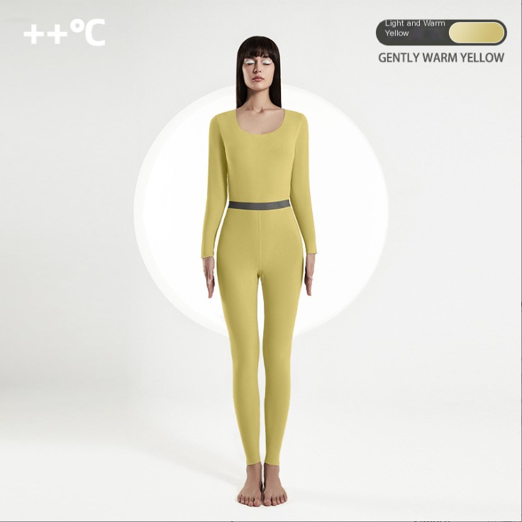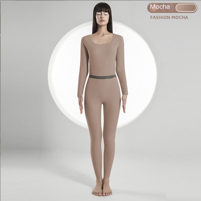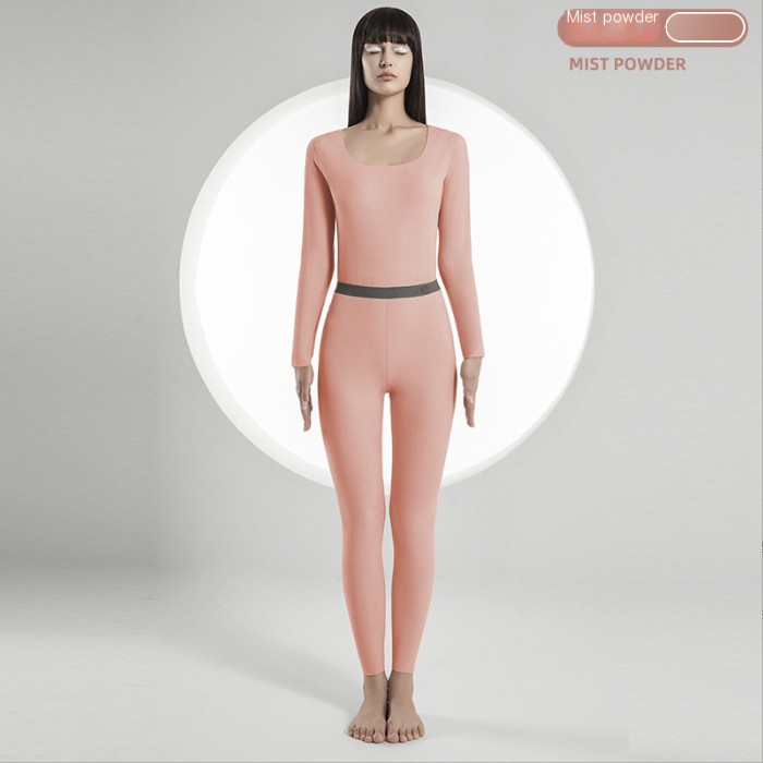 New style solid color autumn autumn clothes and long johns double-sided soft fleece seamless U-neck long-sleeved trousers women's thermal underwear set