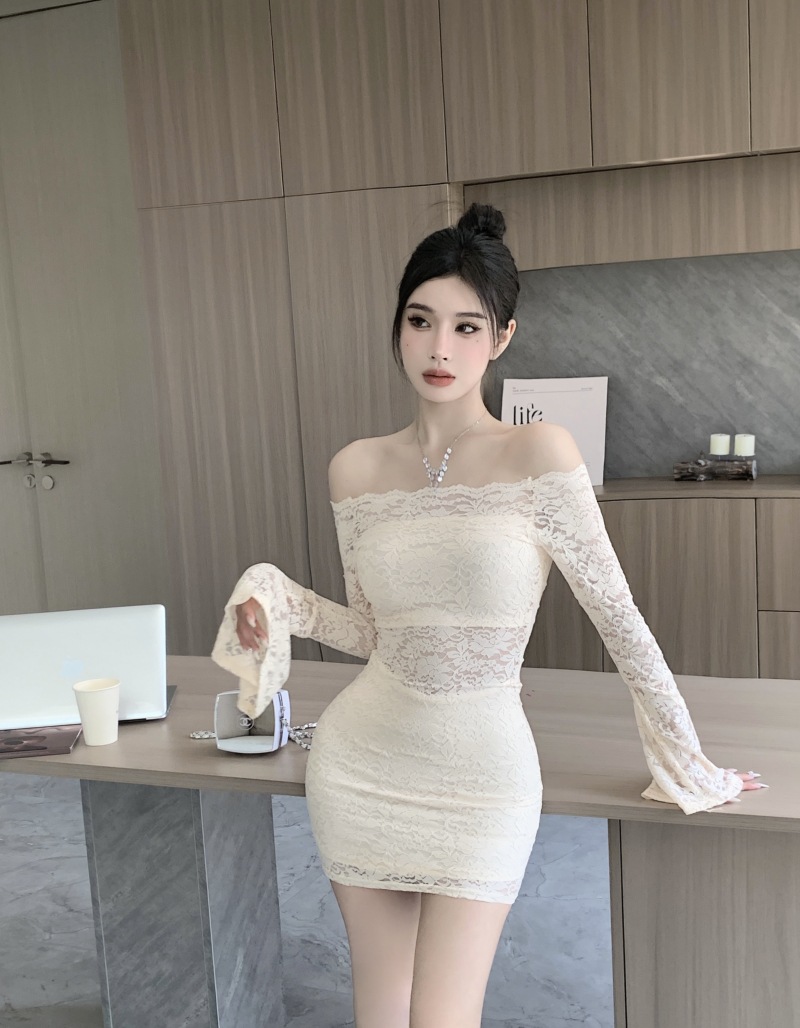 Nightclub sexy skirt 2020 spring and summer new V-neck hollow Slim long-sleeved tight lace dress